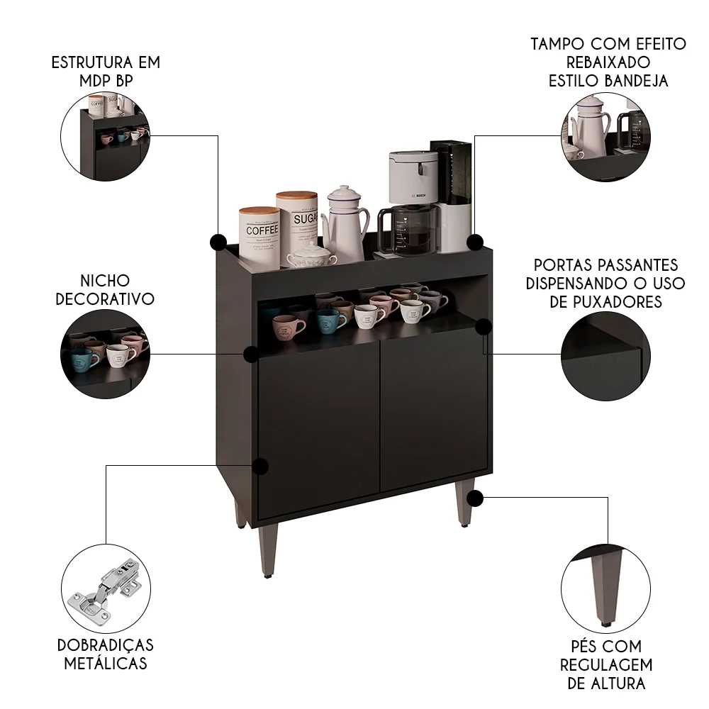 Combinando funcionalidade e estilo, o Balcão Aparador Buffet Cantinho do Café 71cm Lice Z34 Preto, da Mpozenato, é adição perfeita para tornar os momentos de café ainda mais especiais.