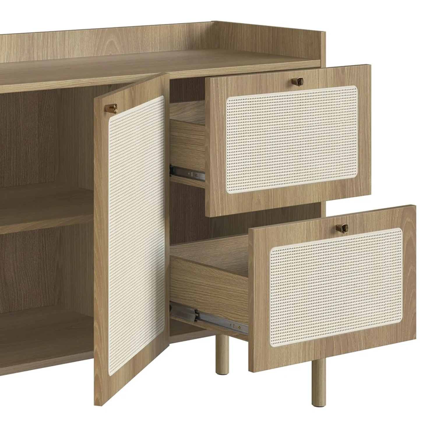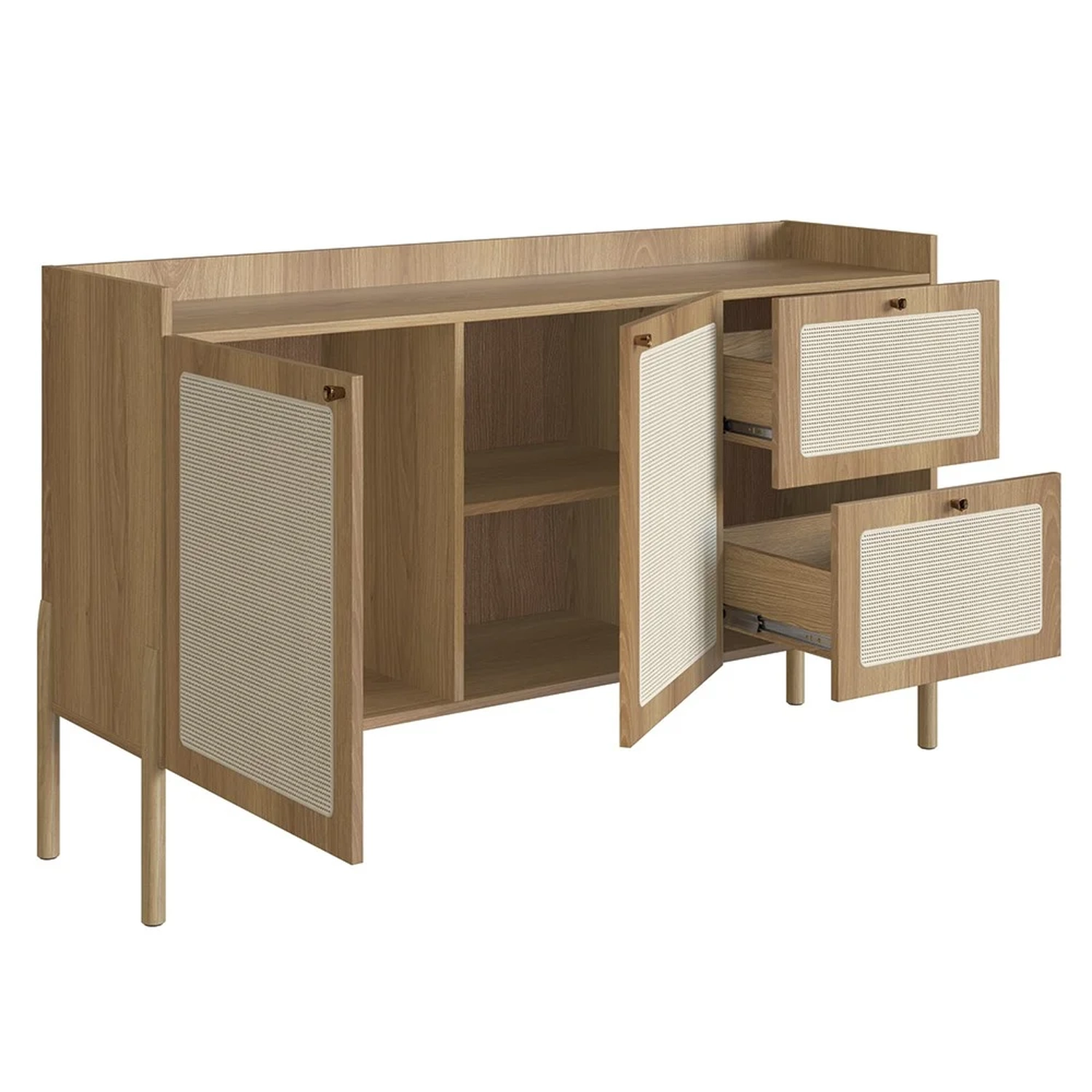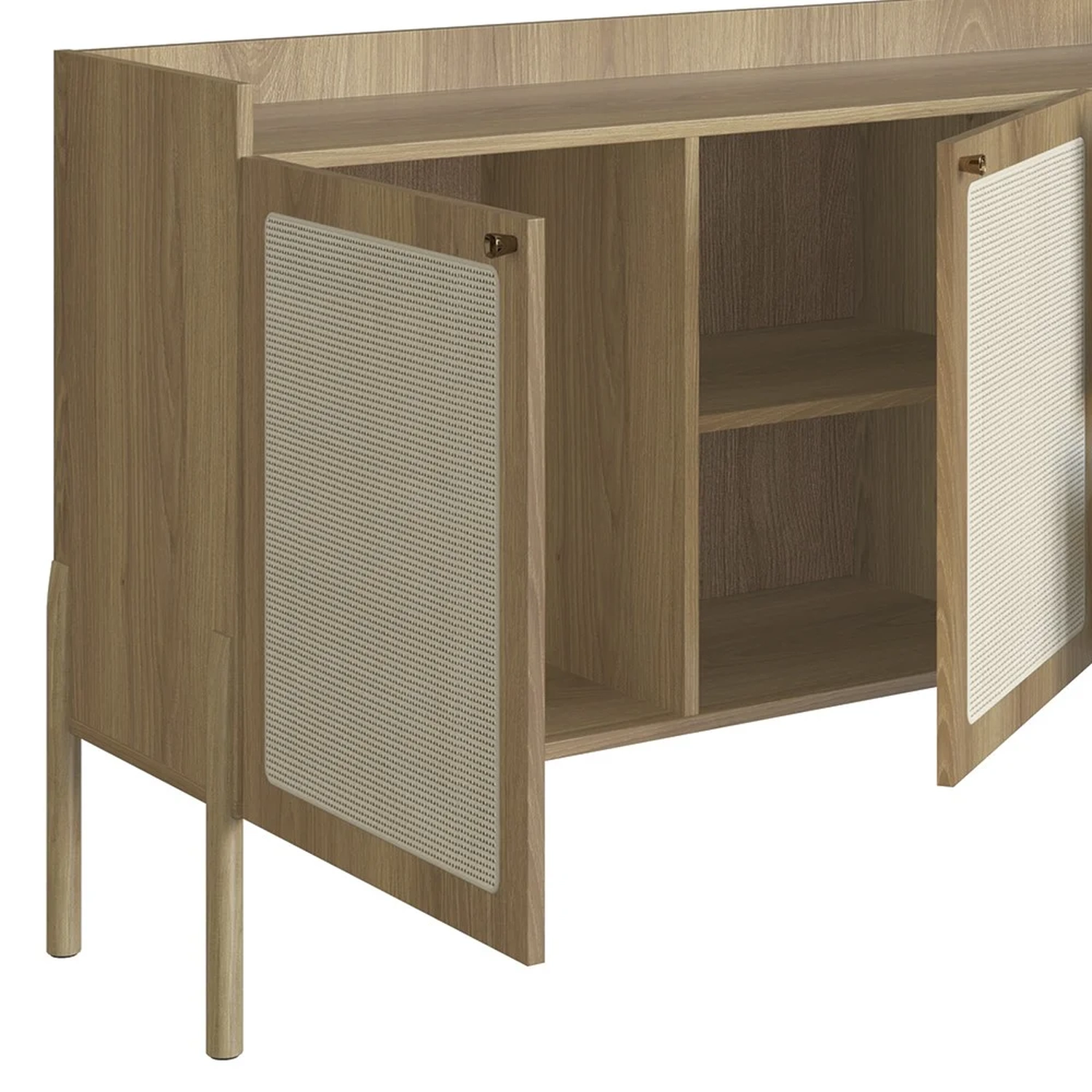 O Balcão Aparador Buffet Pés de Madeira Arlo A10 Hanover, da Mpozenato, é uma peça que combina funcionalidade e estética moderna de maneira exemplar.