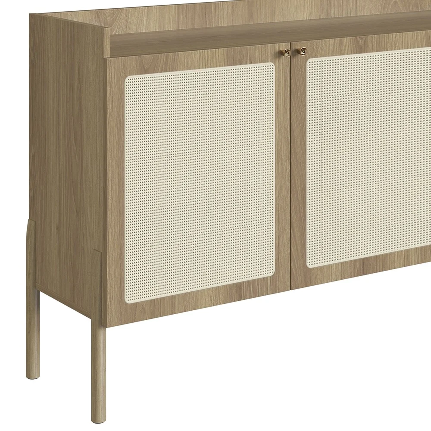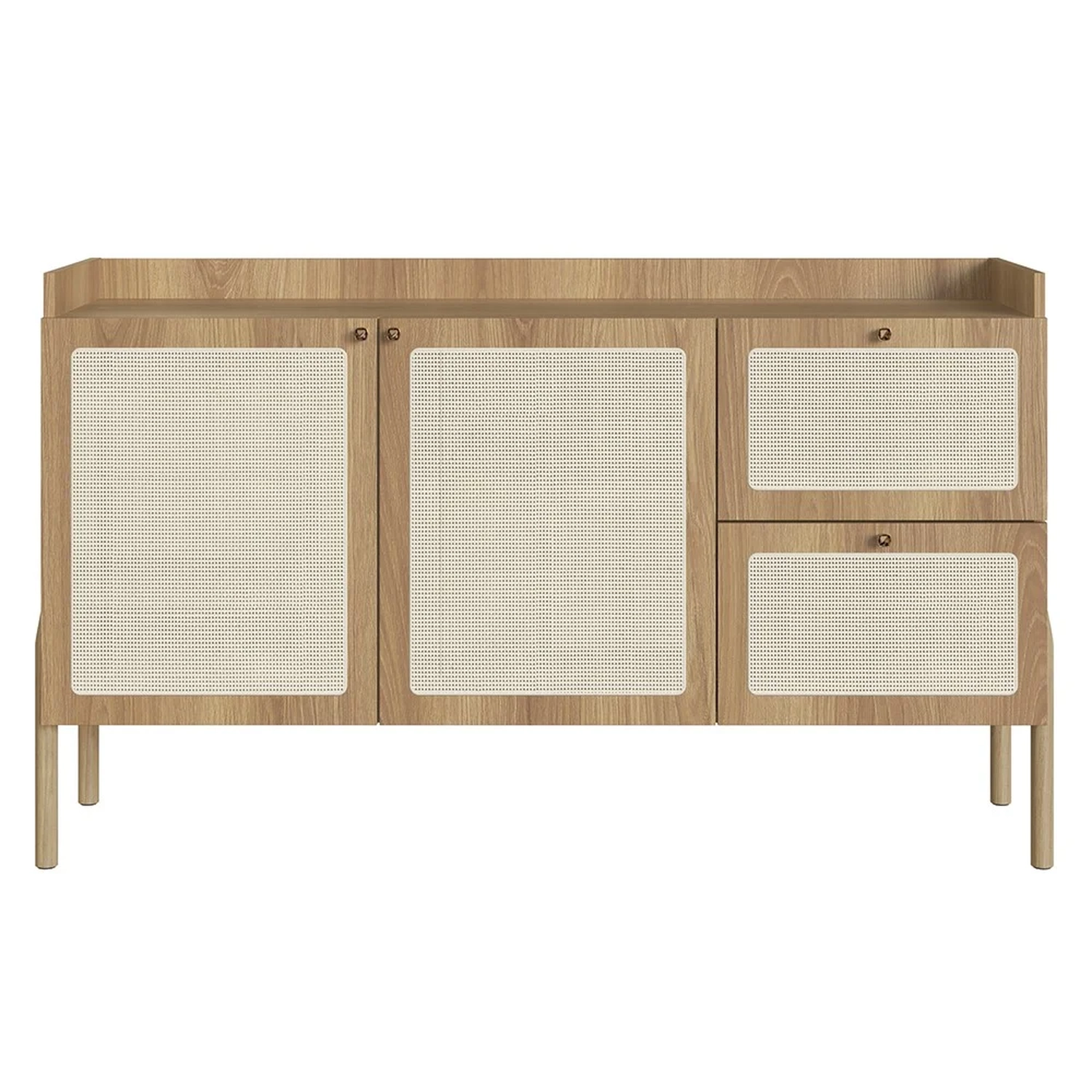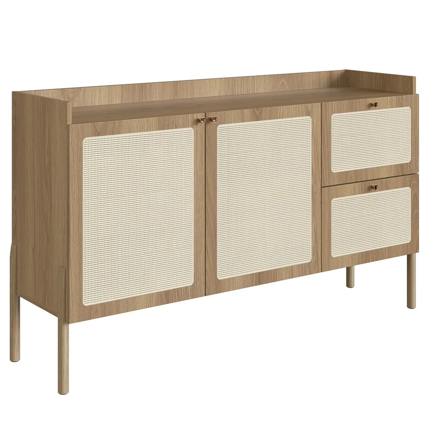O Balcão Aparador Buffet Pés de Madeira Arlo A10 Hanover, da Mpozenato, é uma peça que combina funcionalidade e estética moderna de maneira exemplar.