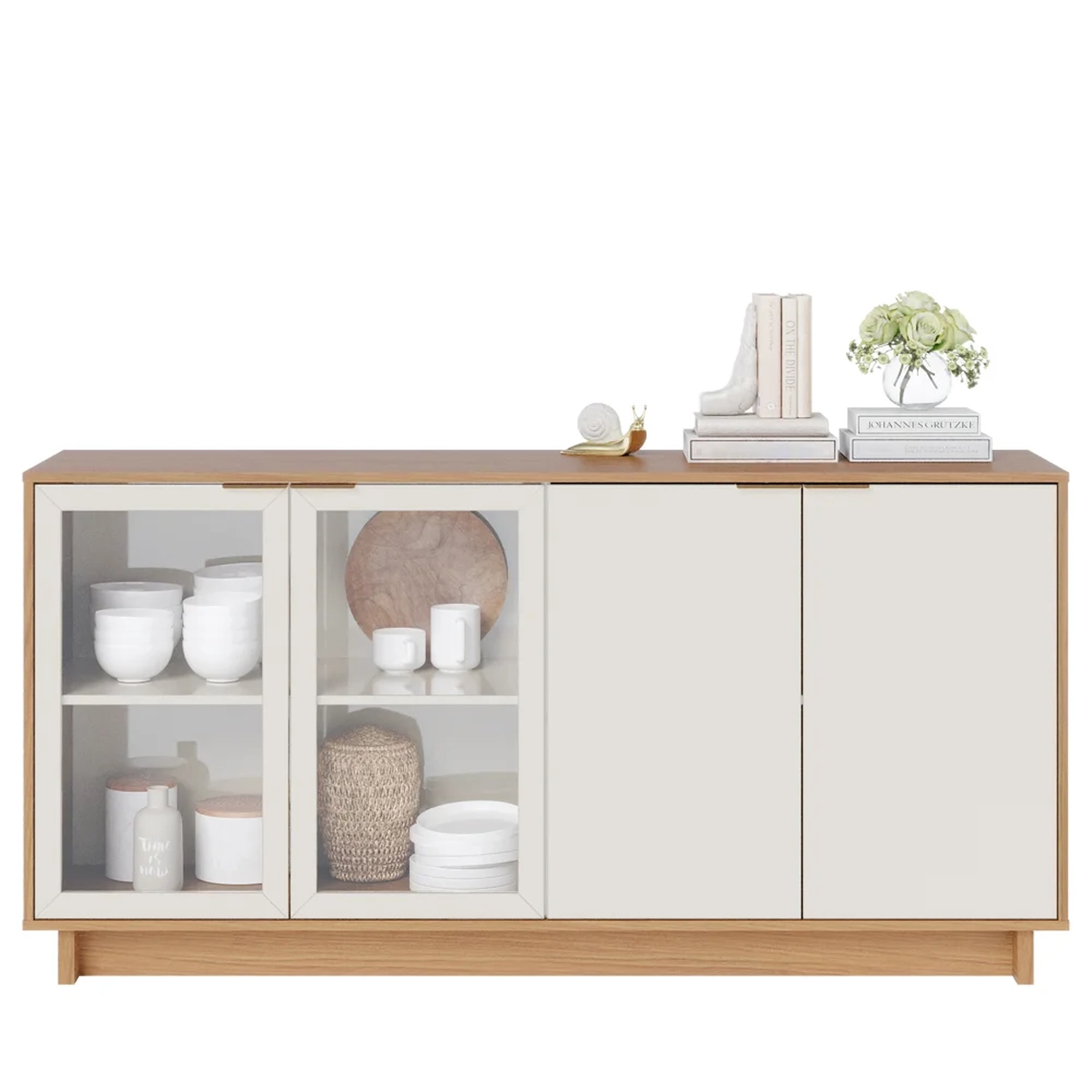 O Balcão Aparador Buffet Vicky da Mpozenato é um móvel contemporâneo e lindo para compor o ambiente. Graças a esse design com uma pegada minimalista e versátil, ele pode fazer parte não só de uma sala de jantar moderna como da sala de estar, hall de entrada ou onde você preferir! Ele conta com 4 portas com puxadores dourados na parte superior, sendo duas delas com centro de vidro e moldura em madeira, permitindo enxergar as divisórias no interior do item. Fabricado em MDP com acabamento em pintura UV fosca agregando qualidade, resistência e muito charme!