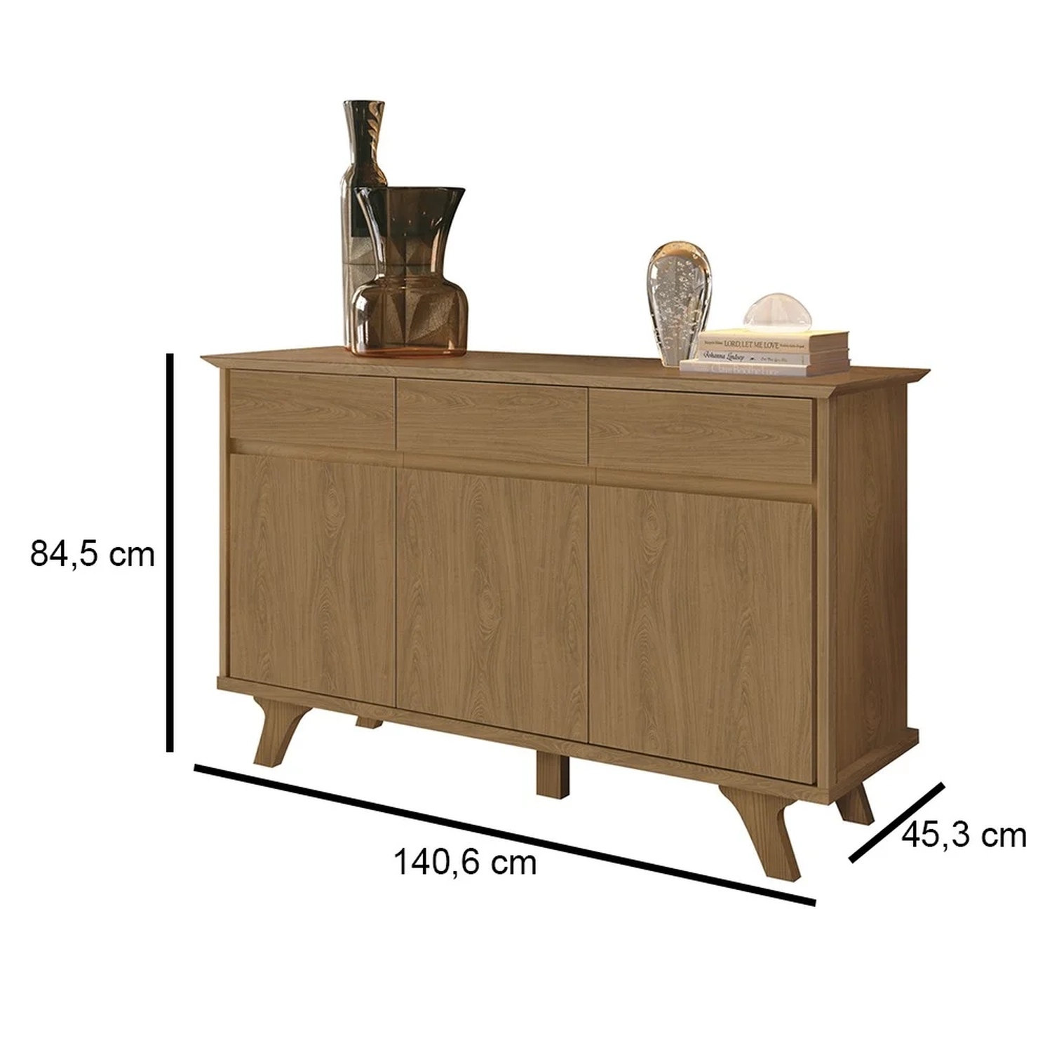 O Buffet Buono conta com 3 portas convencionais, possui um amplo espaço interno devido as prateleiras que facilita a organização dos seus objetos, suas gavetas dão aquele destaque hora de deixar os talheres arrumadinhos, facilitando na hora da confraternização com os amigos e familiares, pode estar utilizando o tampo para colocar utensílios na hora do jantar ou até mesmo aquela decoração preferida. A estrutura feita em MDF e a pintura em UV garante qualidade e durabilidade.