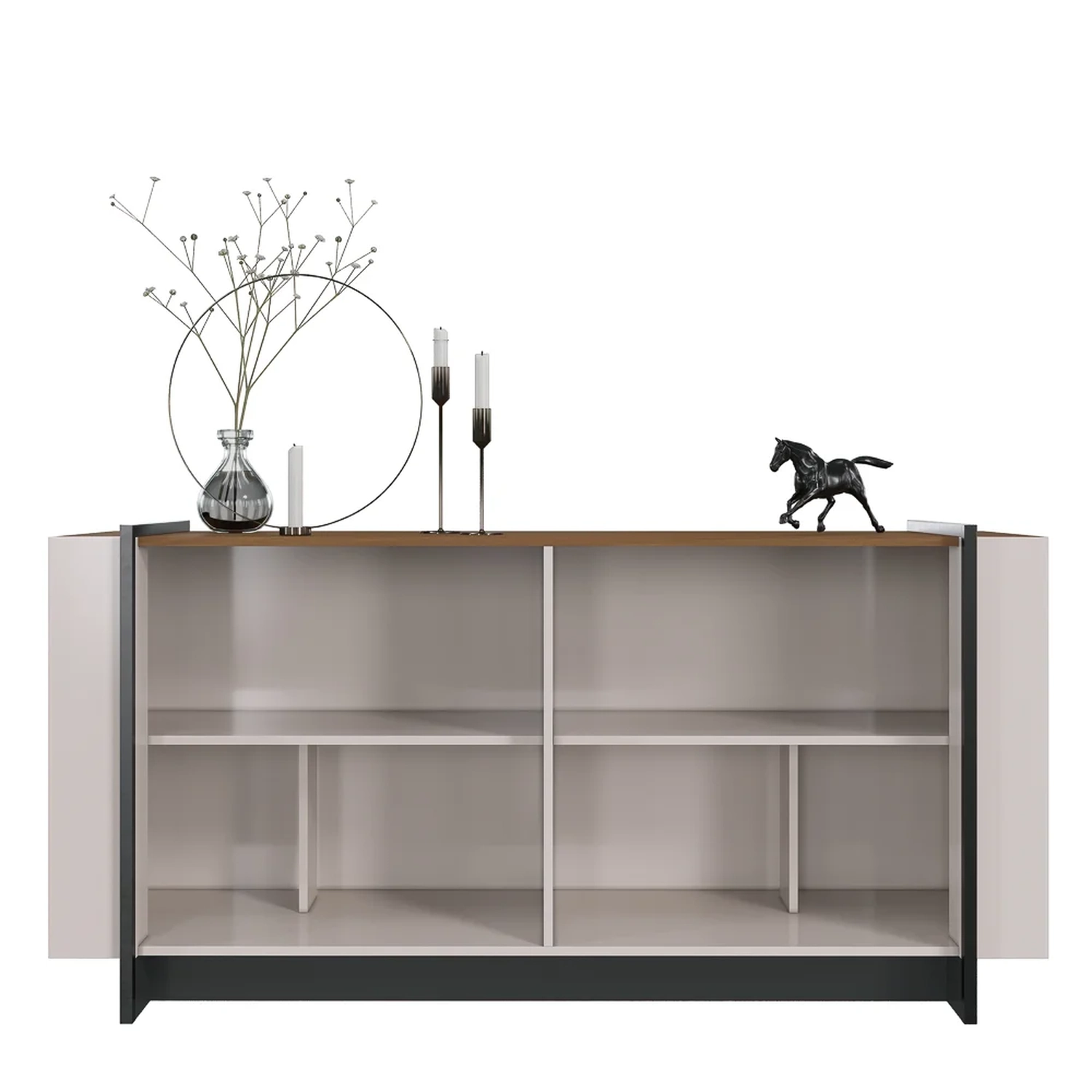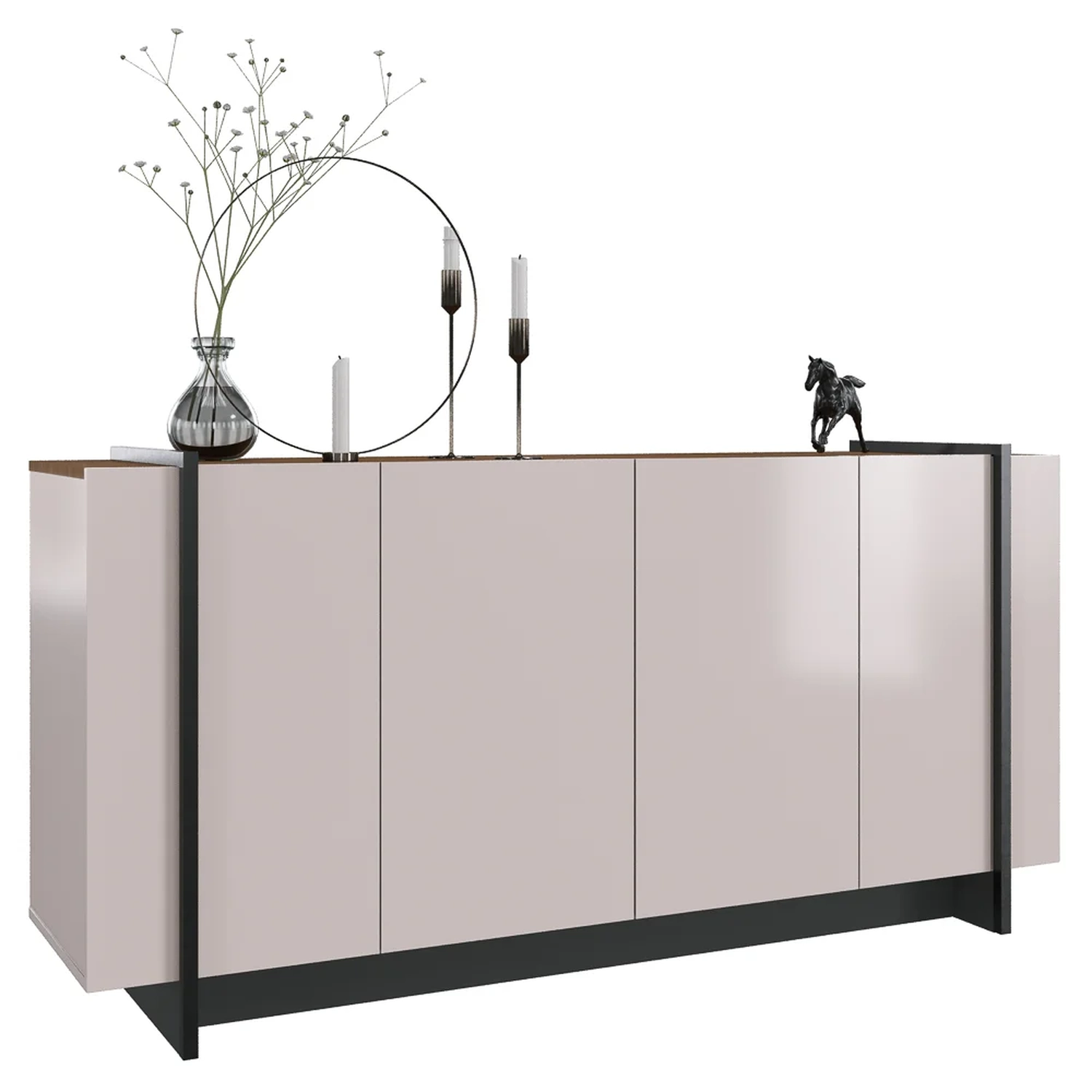 A mistura das tonalidades com as texturas da madeira e dos tubos metálicos é o que torna esse balcão buffet contemporâneo e cheio de estilo. Já a qualidade também é inquestionável, pois é fabricado em MDP com acabamento UV, possui 4 portas com amplo espaço interno e 2 prateleiras para deixar todos os aparatos de jantar organizados e sempre à altuara das mãos.
