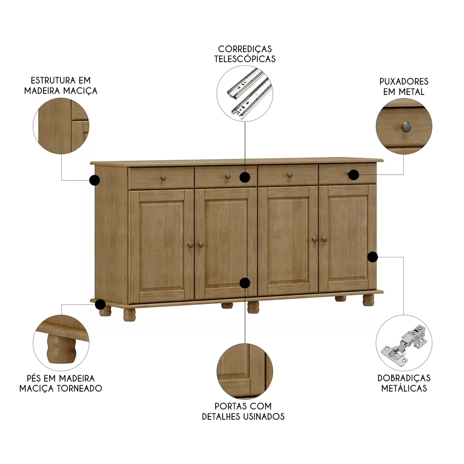 Balcão Buffet Sala de Jantar 169cm 4 Portas 4 Gavetas Rubia F07