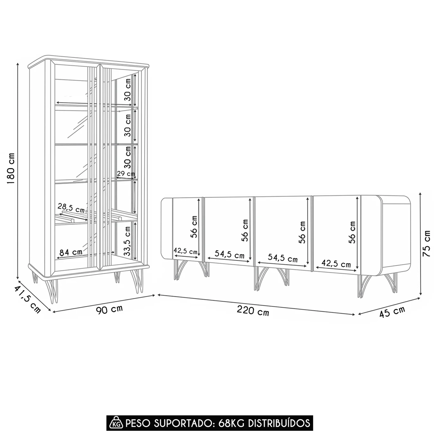 Conteúdo da Embalagem: 1 Cristaleira, 1 Buffet.
