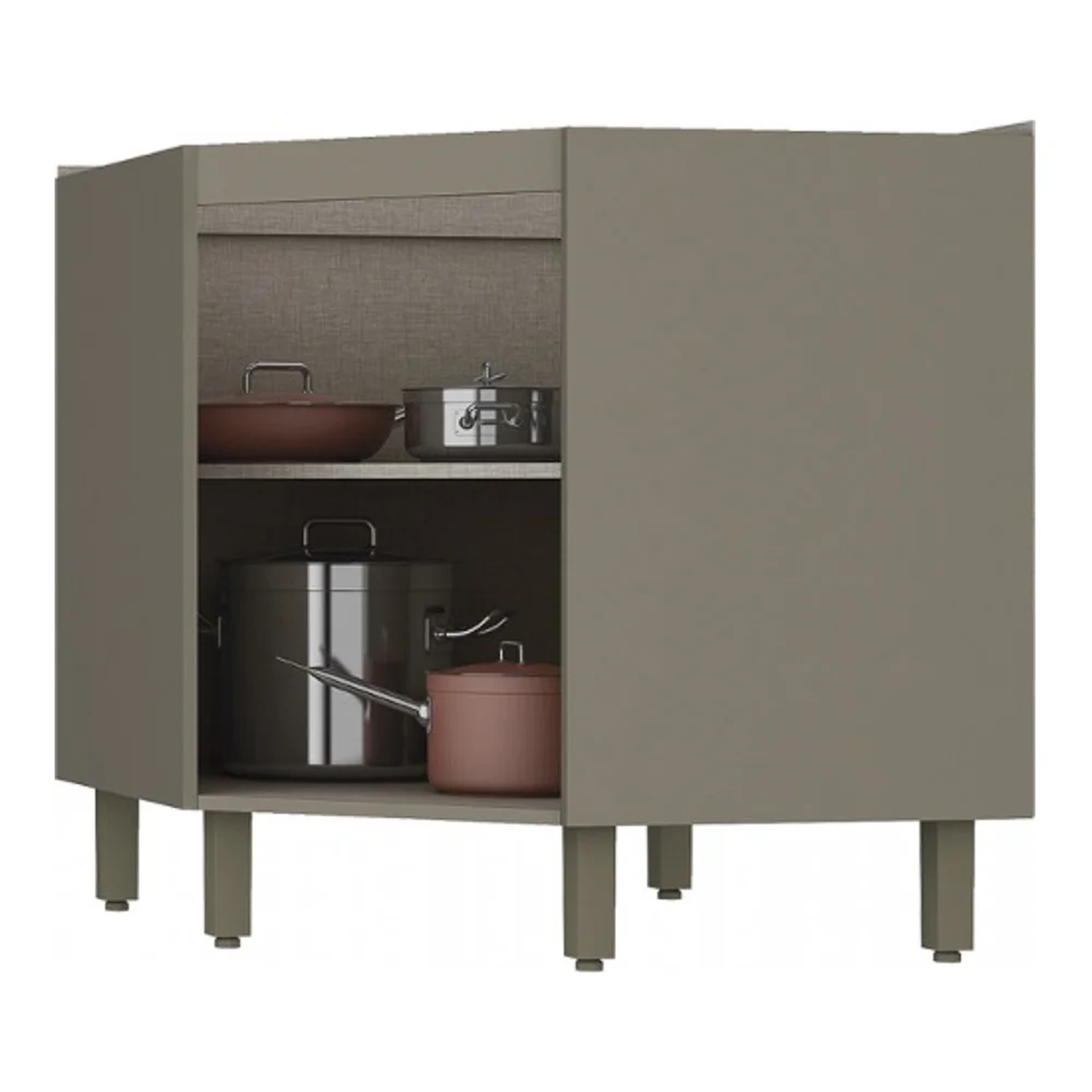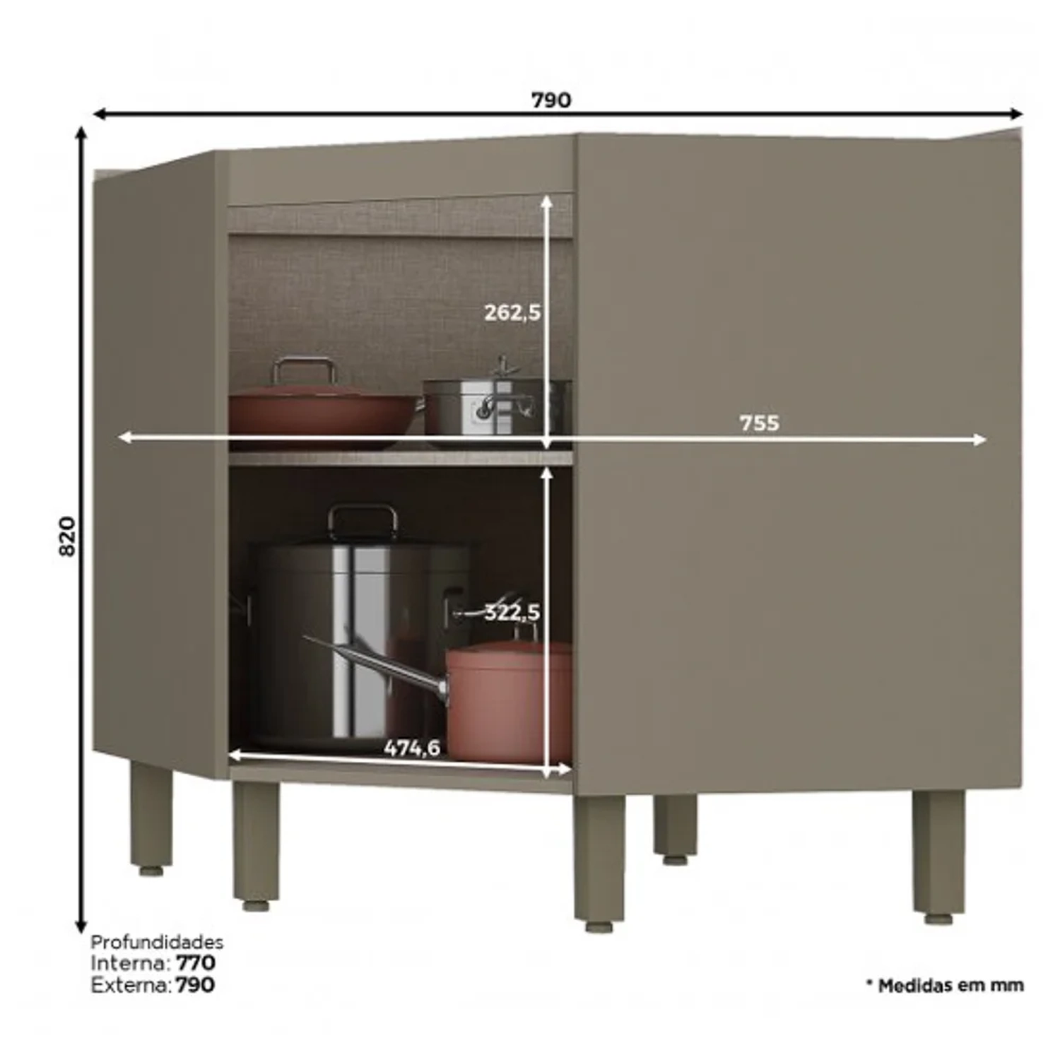 - Pés e puxadores na tonalidade bronze.