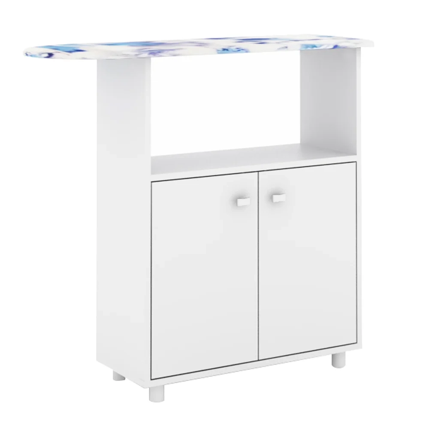 Esse Balcão com tábua de passar é sinônimo de funcionalidade, pois conta com detalhes que ajudam muito no dia a dia. Ele possui 2 portas de dobradiças metálicas com puxadores de plástico, prateleira interna e nicho superior, ou seja, tem tudo que precisa para fazer diferença no cômodo! Ah, e ainda é fabricado em MDP com acabamento em pintura UV que agrega qualidade ao produto.