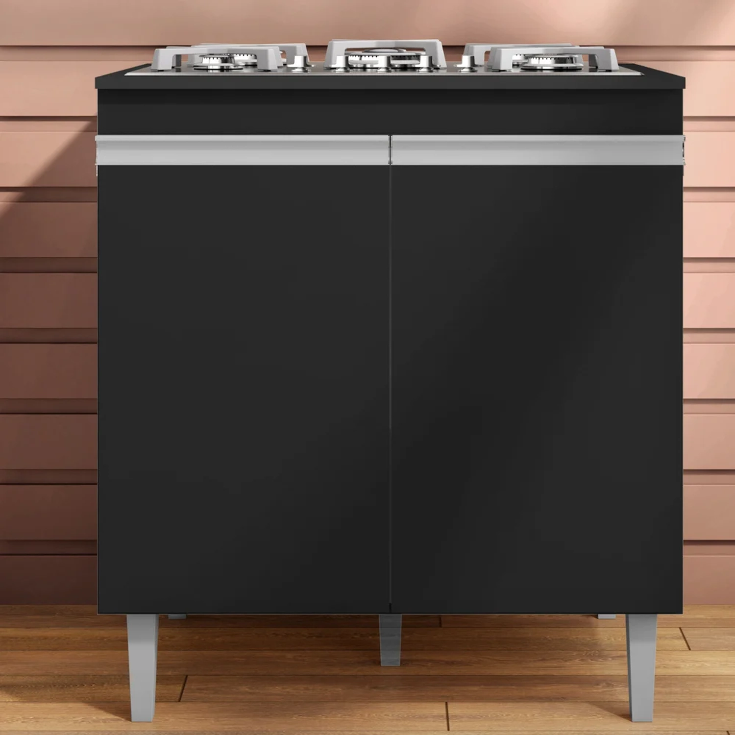Com as cozinhas ficando cada vez mais compactas exigem móveis que se encaixe perfeitamente nesses ambientes, então venha conhecer o Balcão Com Tampo para Cooktop 5 bocas e 2 Portas Andréia Preto da AJL que vem para agregar dando funcionalidade na sua cozinha.