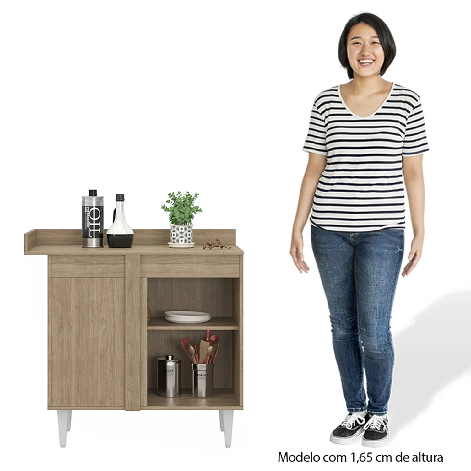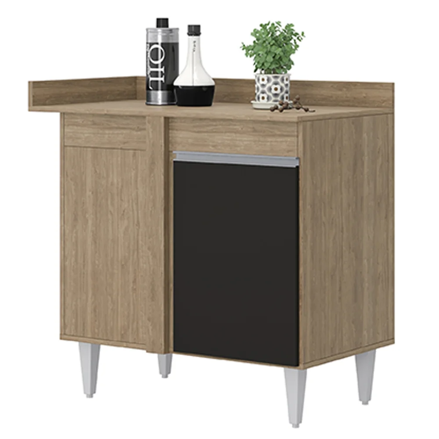 Com 1 porta e 1 prateleira, ele é produzido em MDP com revestimento em BP, o que garante durabilidade e resistência. As corrediças metálicas e os pés reguláveis são outros diferenciais que tornam o produto ainda mais funcional. Além disso, o puxador em alumínio dá um toque moderno e sofisticado ao móvel. Com o Balcão de Canto Reto, você terá um móvel versátil e elegante para compor a decoração da sua casa. Ideal para aquele espaço do ambiente que, muitas vezes, fica inutilizado. Colocando o Balcão você otimiza o espaço e ainda para guardar ou dispor no tampo seus utensílios culinários. Ah! E ele pode ser montado tanto para o lado direito quanto para o lado esquerdo, assim adaptando-se melhor ao seu ambiente.