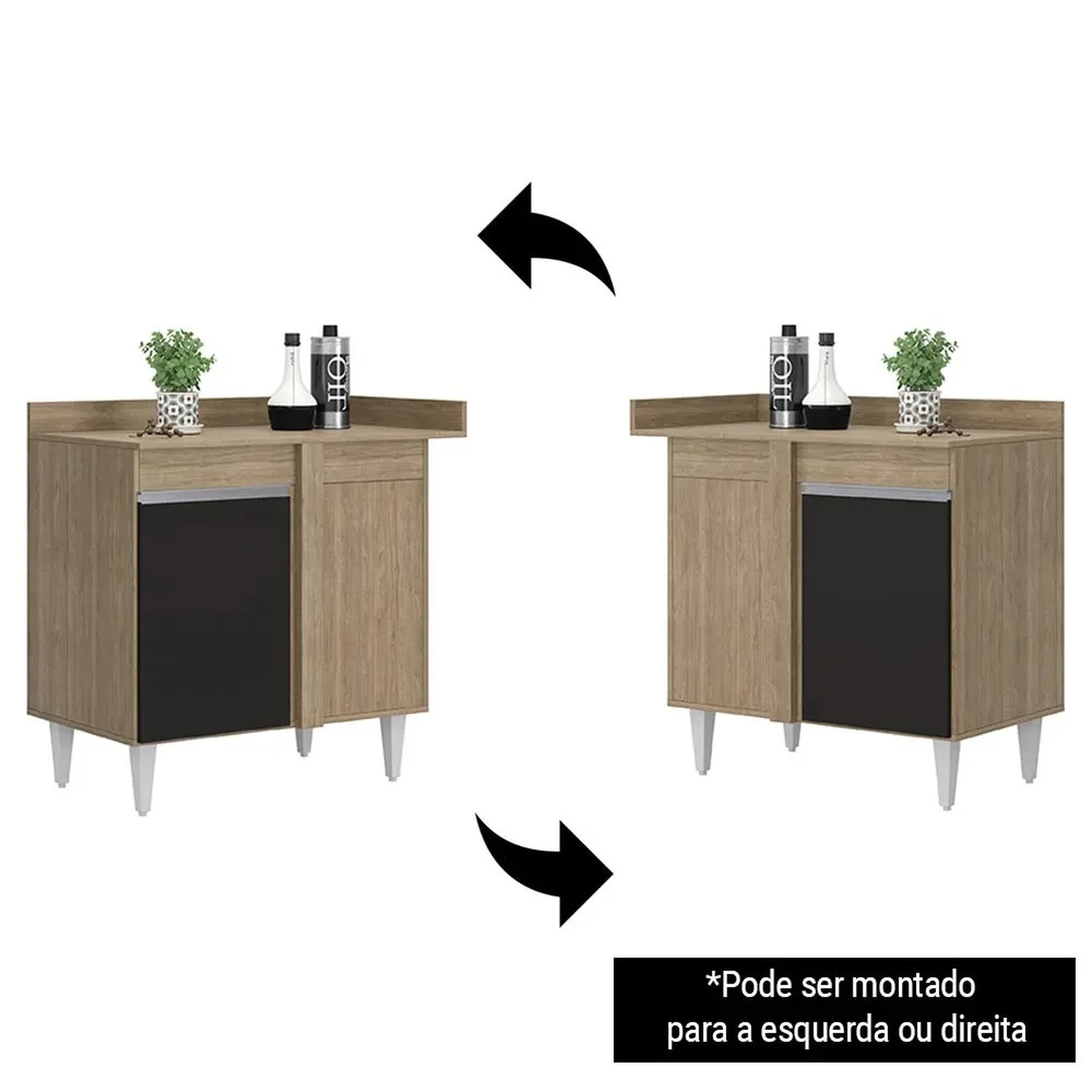 Montagem Flex: Pode ser montado em ambos sentidos, com o nicho para esquerda ou direita.