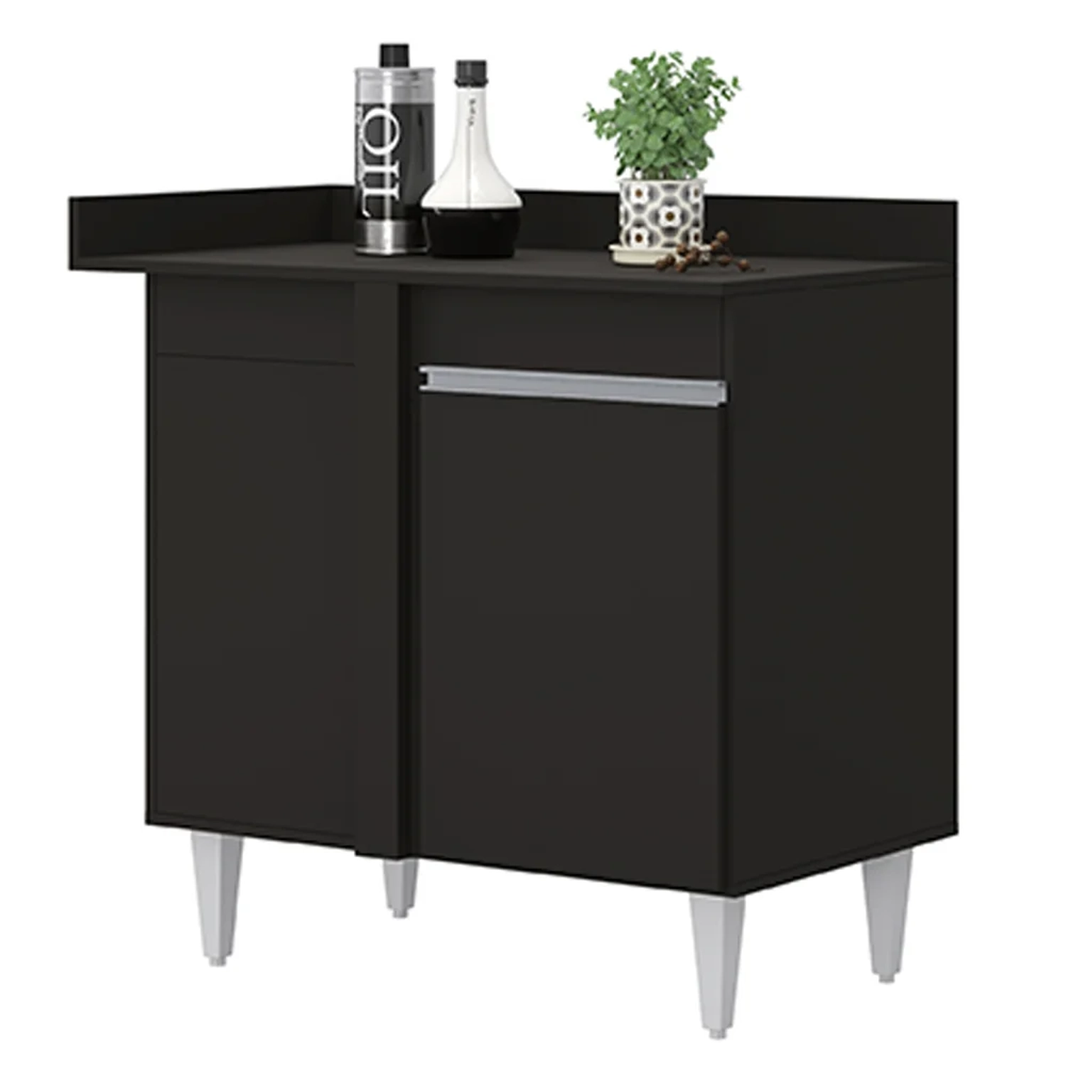 O Balcão de Canto Reto com Tampo Denver Preto, da Lumil é uma ótima escolha para quem busca praticidade e beleza.