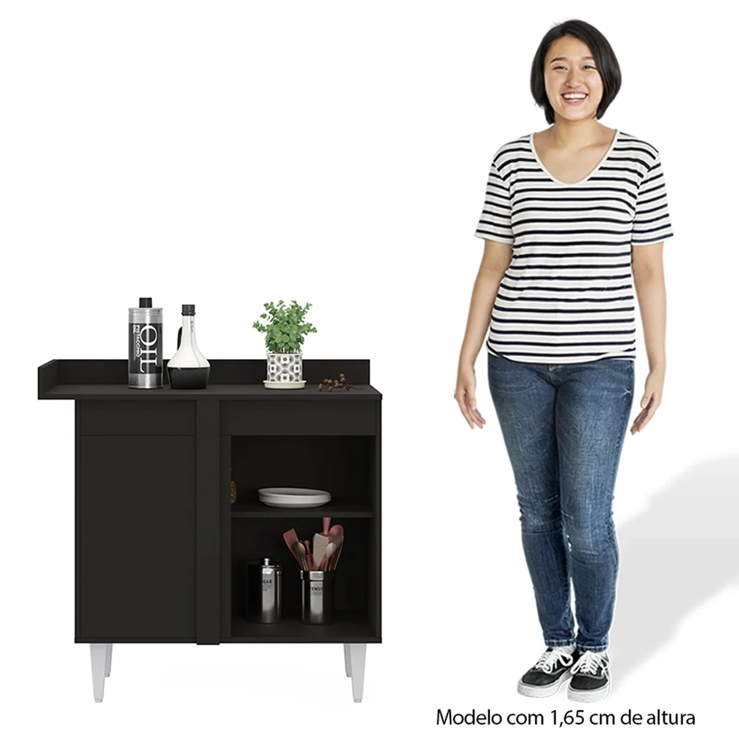 Com 1 porta e 1 prateleira, ele é produzido em MDP com revestimento em BP, o que garante durabilidade e resistência. As corrediças metálicas e os pés reguláveis são outros diferenciais que tornam o produto ainda mais funcional. Além disso, o puxador em alumínio dá um toque moderno e sofisticado ao móvel. Com o Balcão de Canto Reto, você terá um móvel versátil e elegante para compor a decoração da sua casa. Ideal para aquele espaço do ambiente que, muitas vezes, fica inutilizado. Colocando o Balcão você otimiza o espaço e ainda para guardar ou dispor no tampo seus utensílios culinários. Ah! E ele pode ser montado tanto para o lado direito quanto para o lado esquerdo, assim adaptando-se melhor ao seu ambiente.