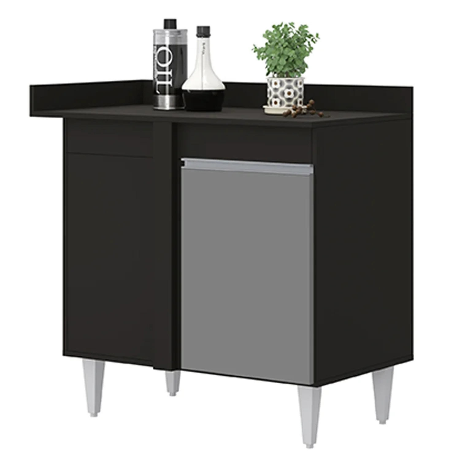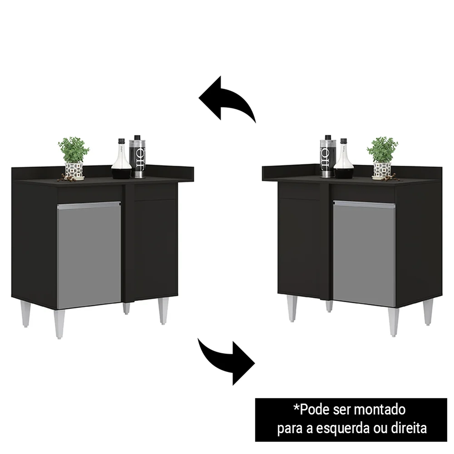 O Balcão de Canto Reto com Tampo Denver Preto/Cinza, da Lumil é uma ótima escolha para quem busca praticidade e beleza.