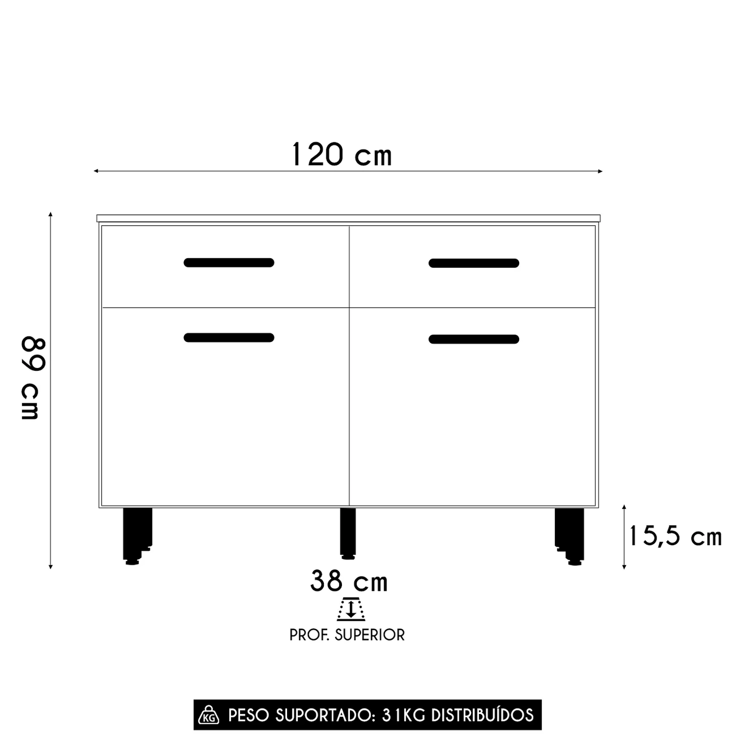 Peso Suportado: 31 Kg distribuídos.