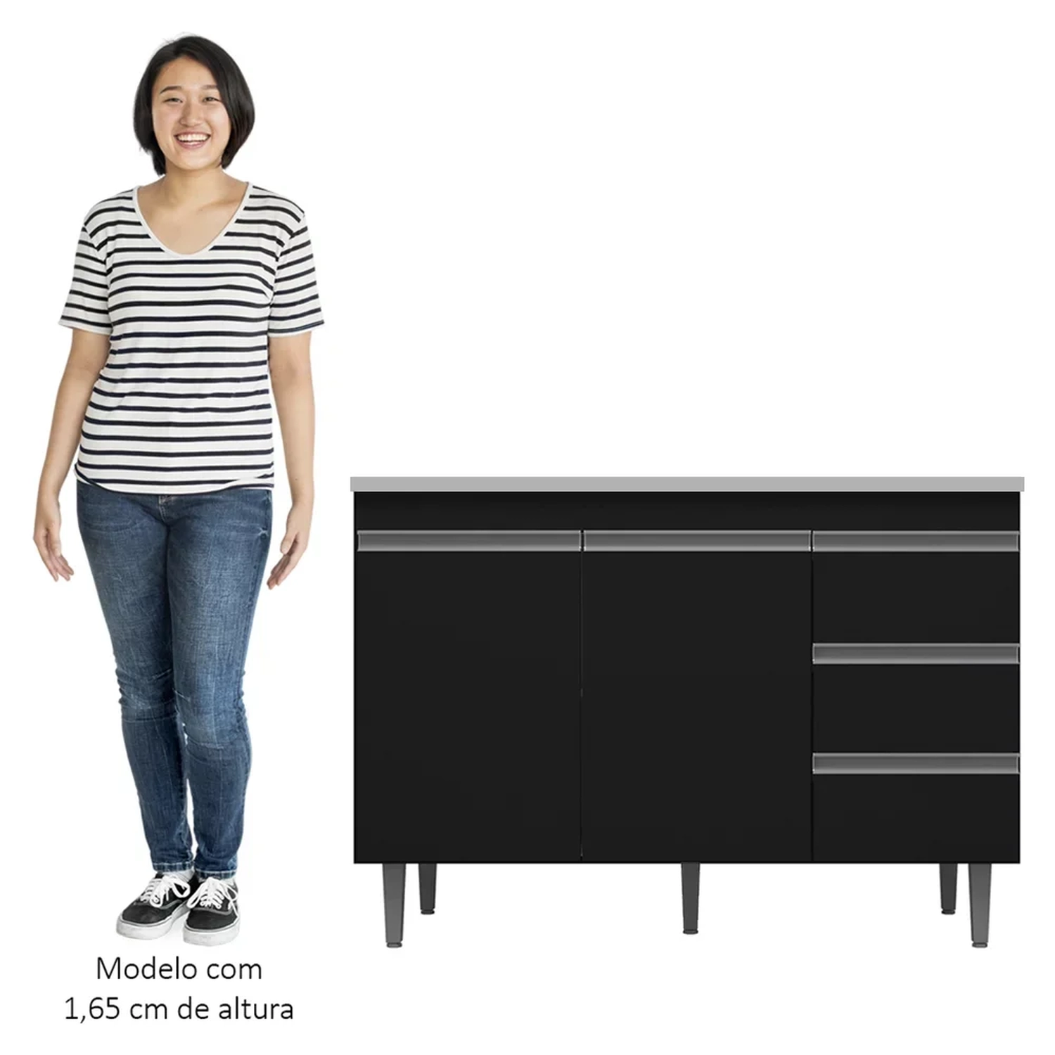 Se você está procurando um balcão compacto, prático e funcional para a sua cozinha o Balcão de Cozinha Com Pia Inox 100cm 3 Gavetas Andréia Preto, da AJL Móveis é perfeito!
