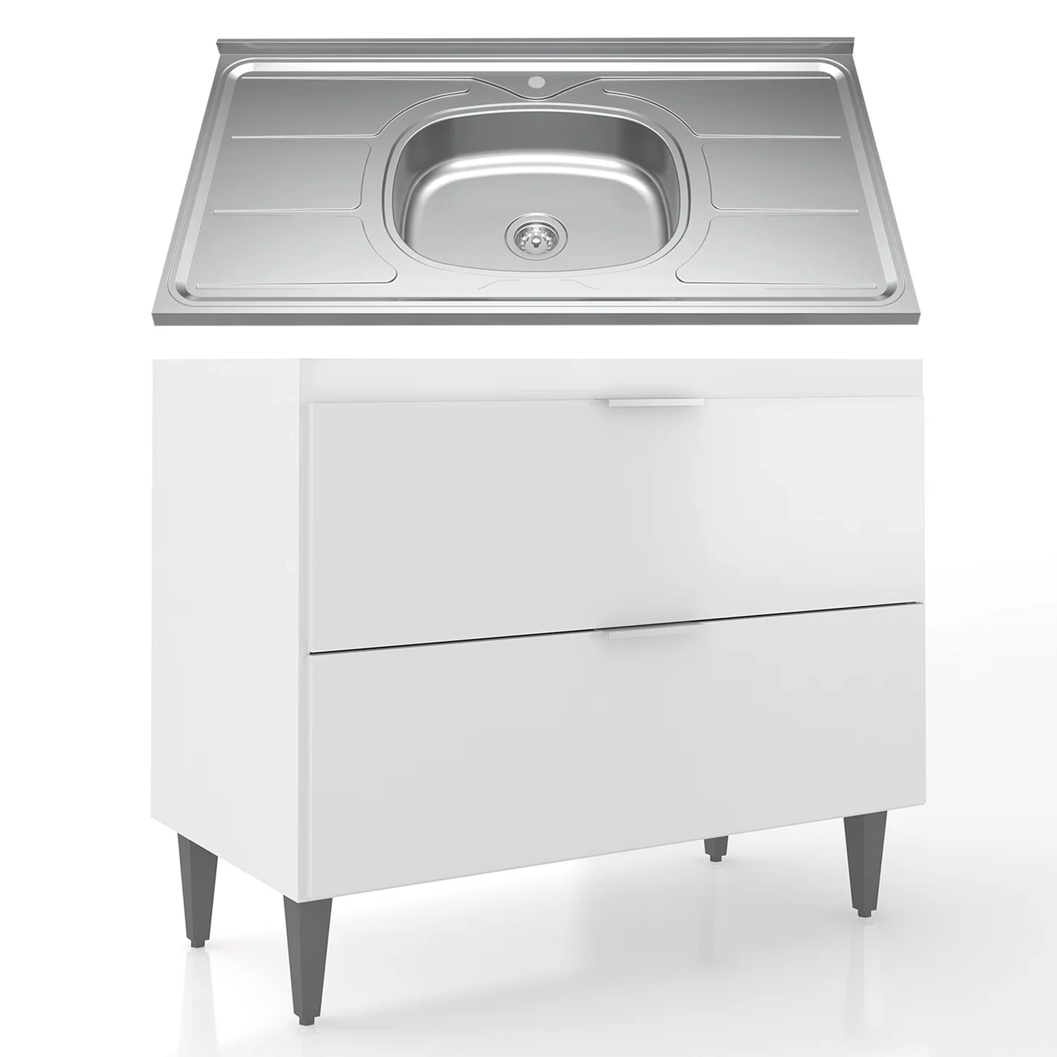 Balcão de Cozinha Com Pia Inox 100cm Pérola Z34 Branco - Mpozenato 201937