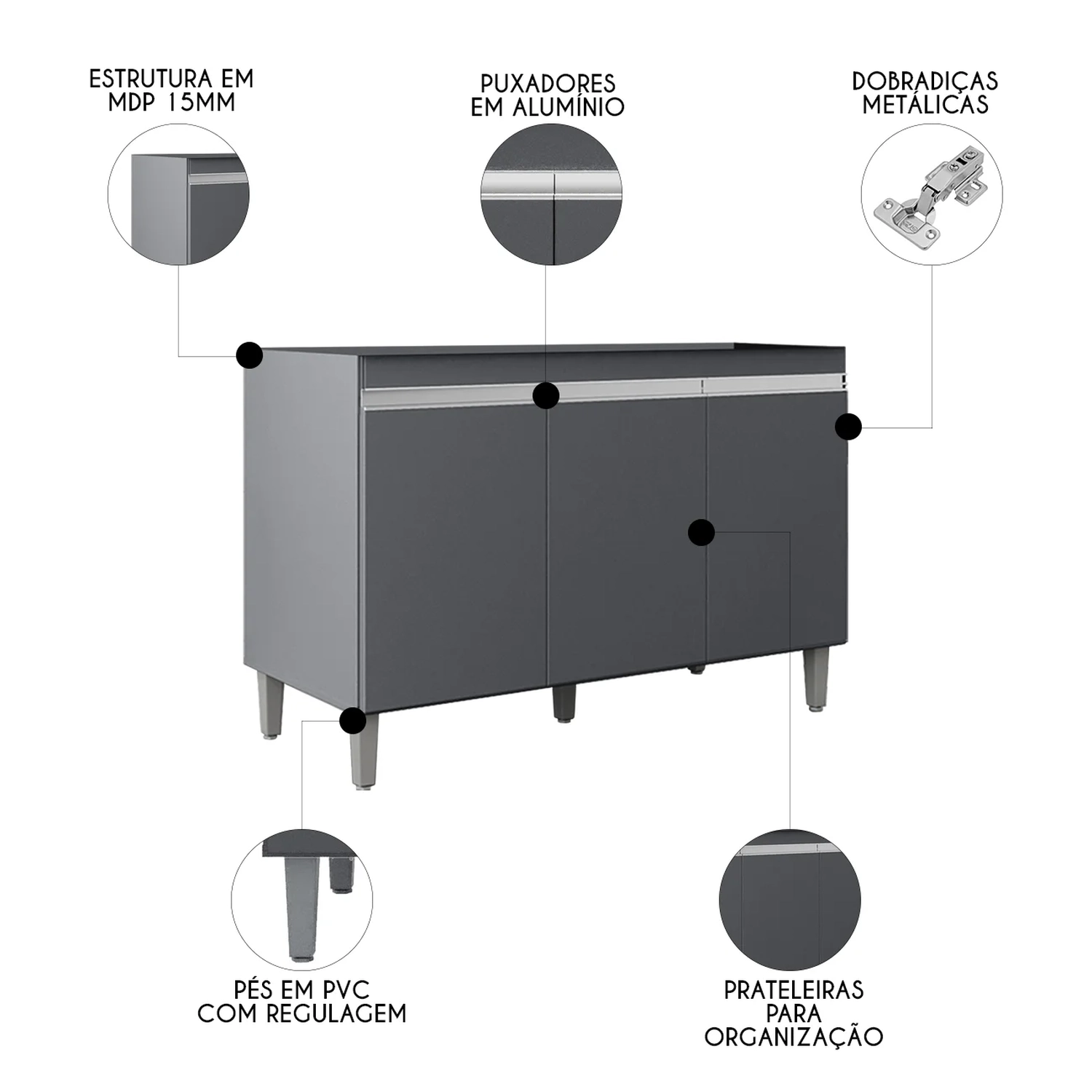 O Balcão de Cozinha Com Pia Inox 120 cm Manu Cinza, da AJL Móveis e a beleza e praticidade para sua cozinha
