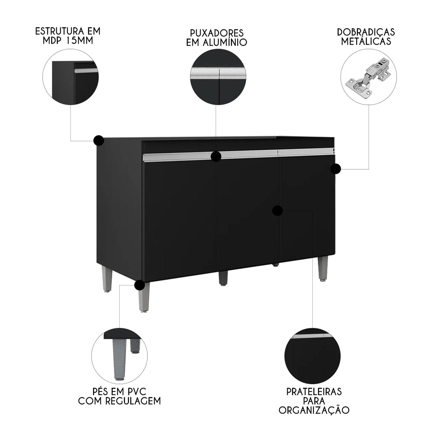O Balcão de Cozinha Com Pia Inox 120 cm Manu Preto, da AJL Móveis é a beleza e praticidade para sua cozinha