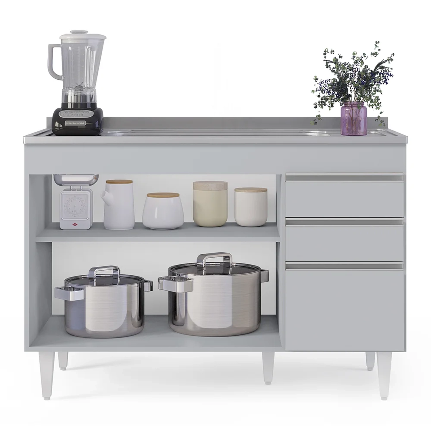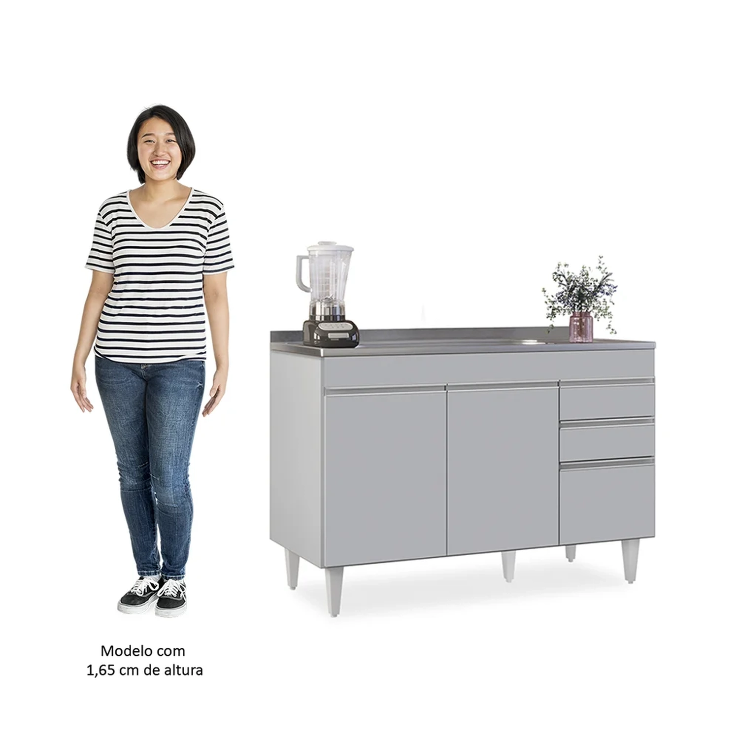 Procurando funcionalidade para sua Cozinha? Vem conhecer o Balcão de Cozinha com Pia Inox 120cm Michigan Cinza Claro, da Lumil!