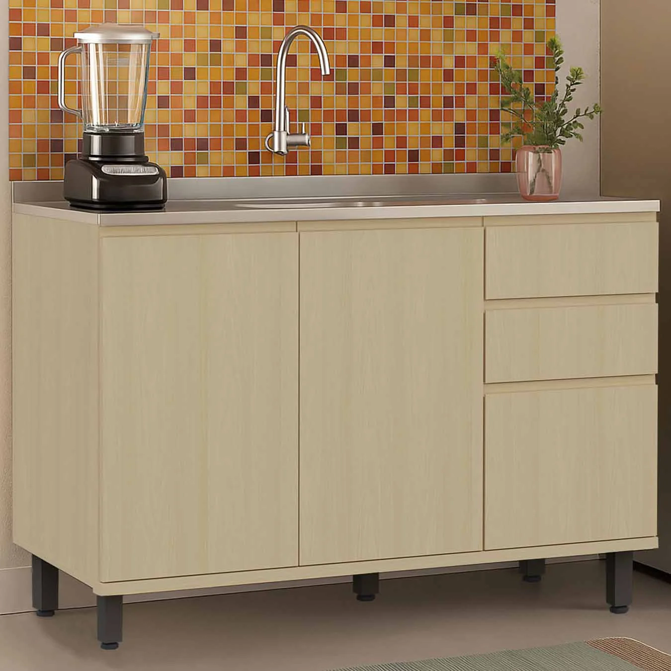Balcão de Cozinha Com Pia Inox 120cm Pierre Carvalho L01 - Mpozenato