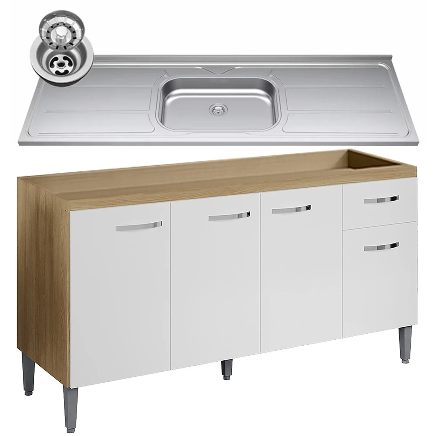 Conteúdo da Embalagem: 1 Balcão, 1 Pia Inox.