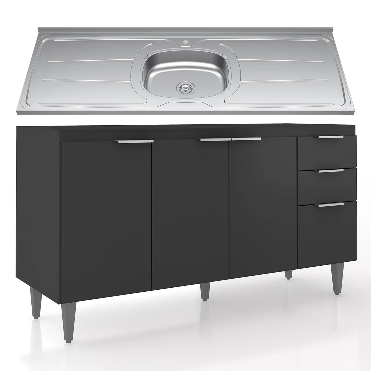 Compor a Cozinha com praticidade e estilo pode ser mais fácil do que você imagina. Com o Balcão de Cozinha Com Pia Inox 150cm Pérola Z34 Preto da Mpozenato, você transforma seu espaço, tornando-o mais moderno, funcional e perfeito para o seu dia a dia.