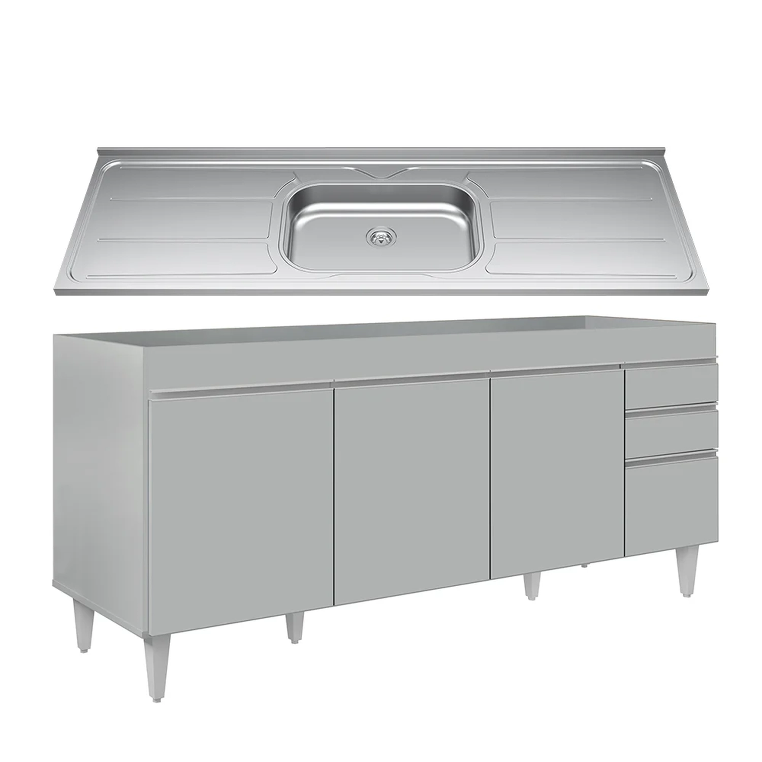Em um cômodo que exige funcionalidade, o Balcão de Cozinha Com Pia Inox 180cm Dallas Cinza Claro é a escolha perfeita! Conheça os motivos!
