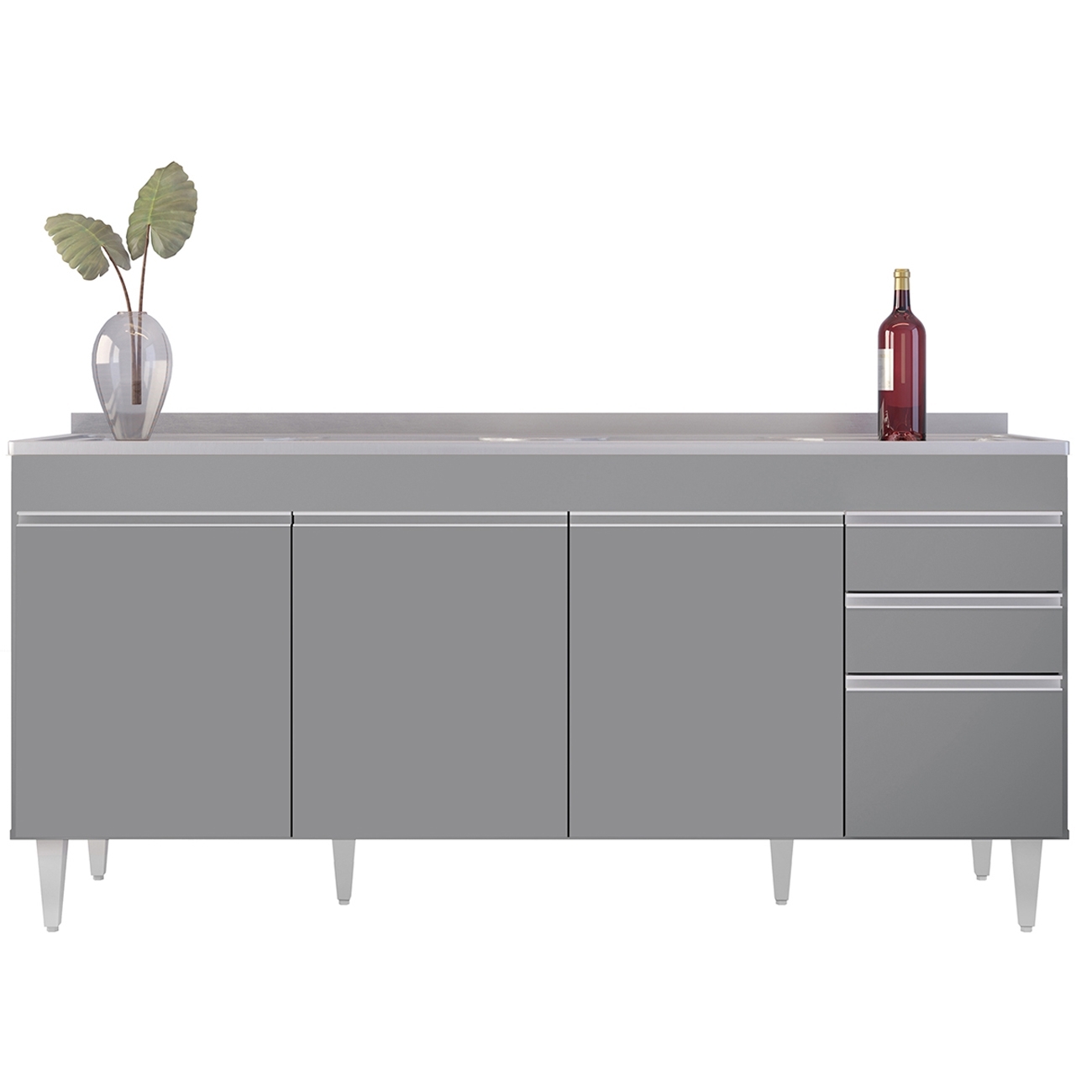 Balcão de Cozinha Com Pia Inox 180cm Dallas Cinza - Lumil