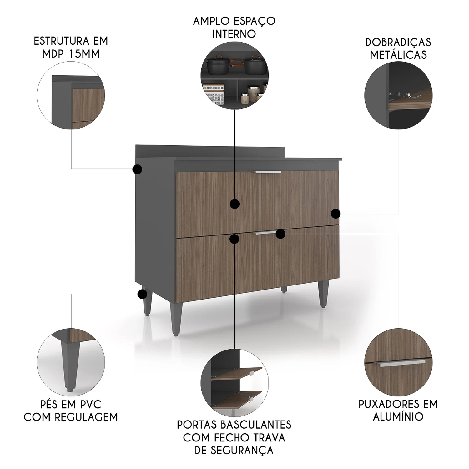 Montar a Cozinha dos seus sonhos nunca foi tão fácil. Com o Balcão de Cozinha Com Tampo 100cm Pérola Grafite/Freijó Z34 da Mpozenato, você transforma seu espaço, tornando-o mais moderno, funcional e perfeito para o seu dia a dia.