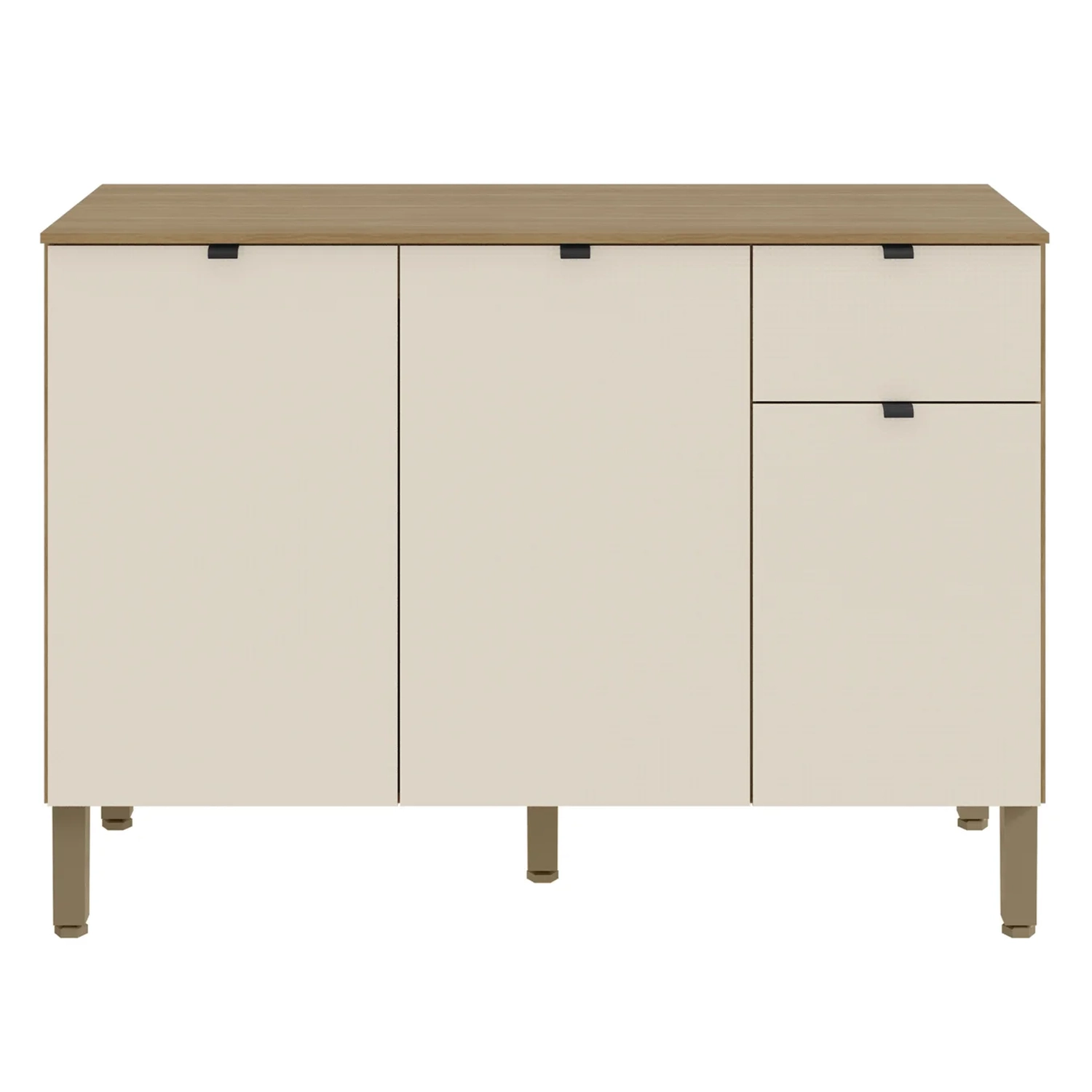 Produzido em MDF de 12mm com acabamento em pintura UV, o Balcão de Cozinha garante durabilidade e resistência para o uso. As dobradiças metálicas e as corrediças telescópicas promovem uma abertura e fechamento suave, enquanto os puxadores em alumínio tornam o manuseio mais prático e confortável. Além disso, os pés em plástico resistente são reguláveis, o que permite ajustar pequenos desníveis de piso e manter a estabilidade do Balcão.