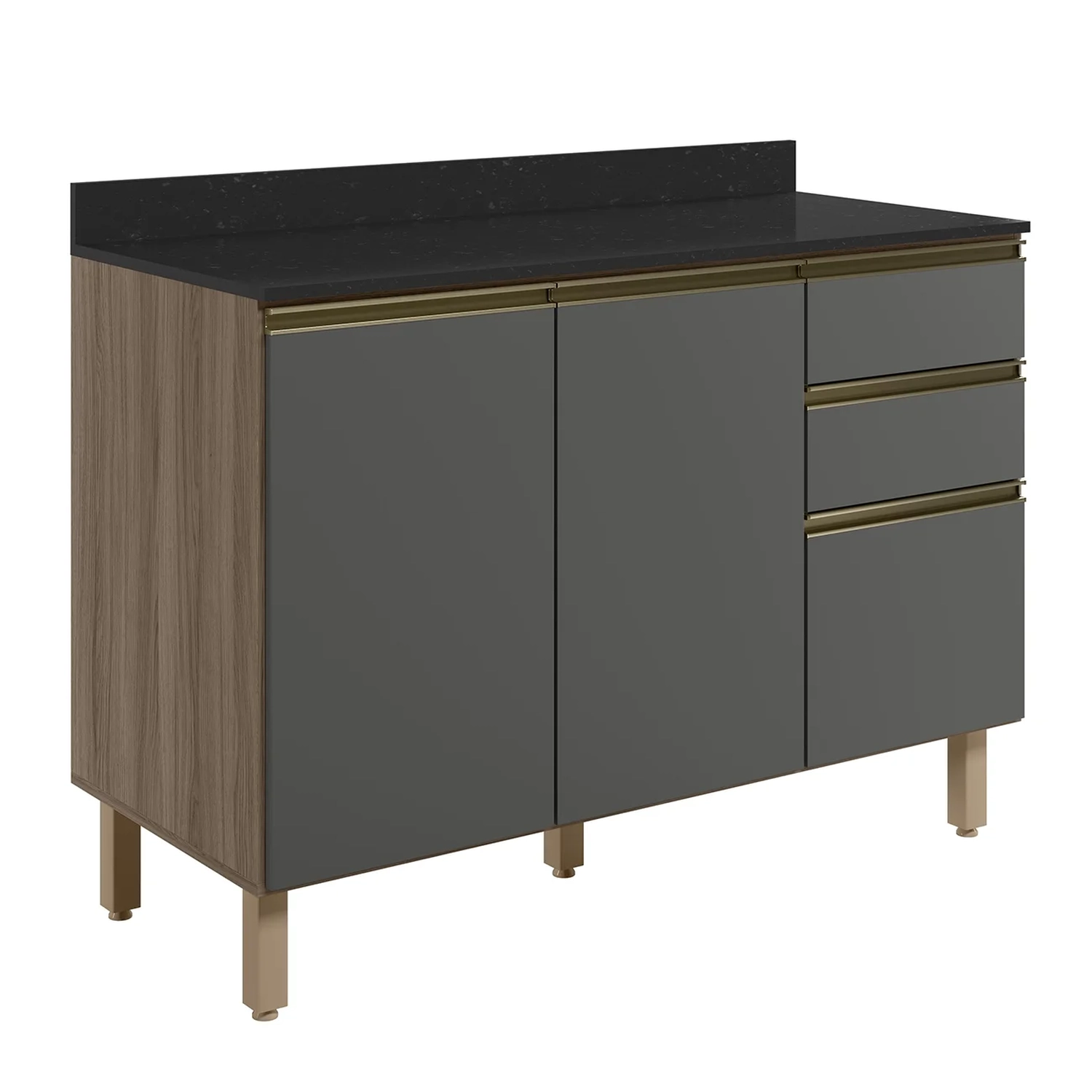 O Balcão de Cozinha Com Tampo 120cm Maly N03 Carvalho/Grafite, da Mpozenato em MDF de 15mm com acabamento em pintura UV é uma escolha elegante e funcional para uma Cozinha Moderna.