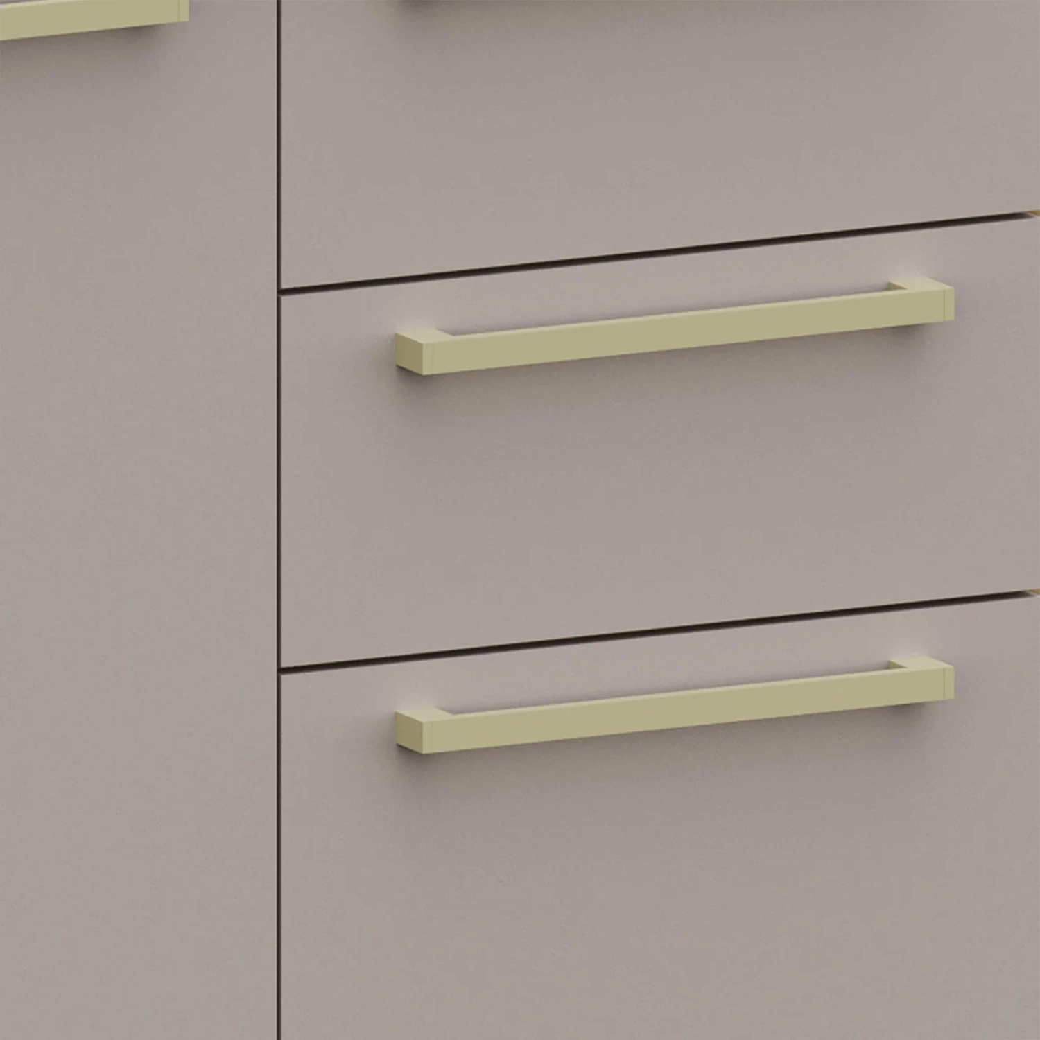 As portas do Balcão Gabinete com puxadores em alumínio e equipadas com dobradiças metálicas e amortecimento, garantem um fechamento suave e silencioso. A prateleira interna ajuda a aproveitar melhor o espaço, mantendo seus itens sempre organizados e de fácil acesso.