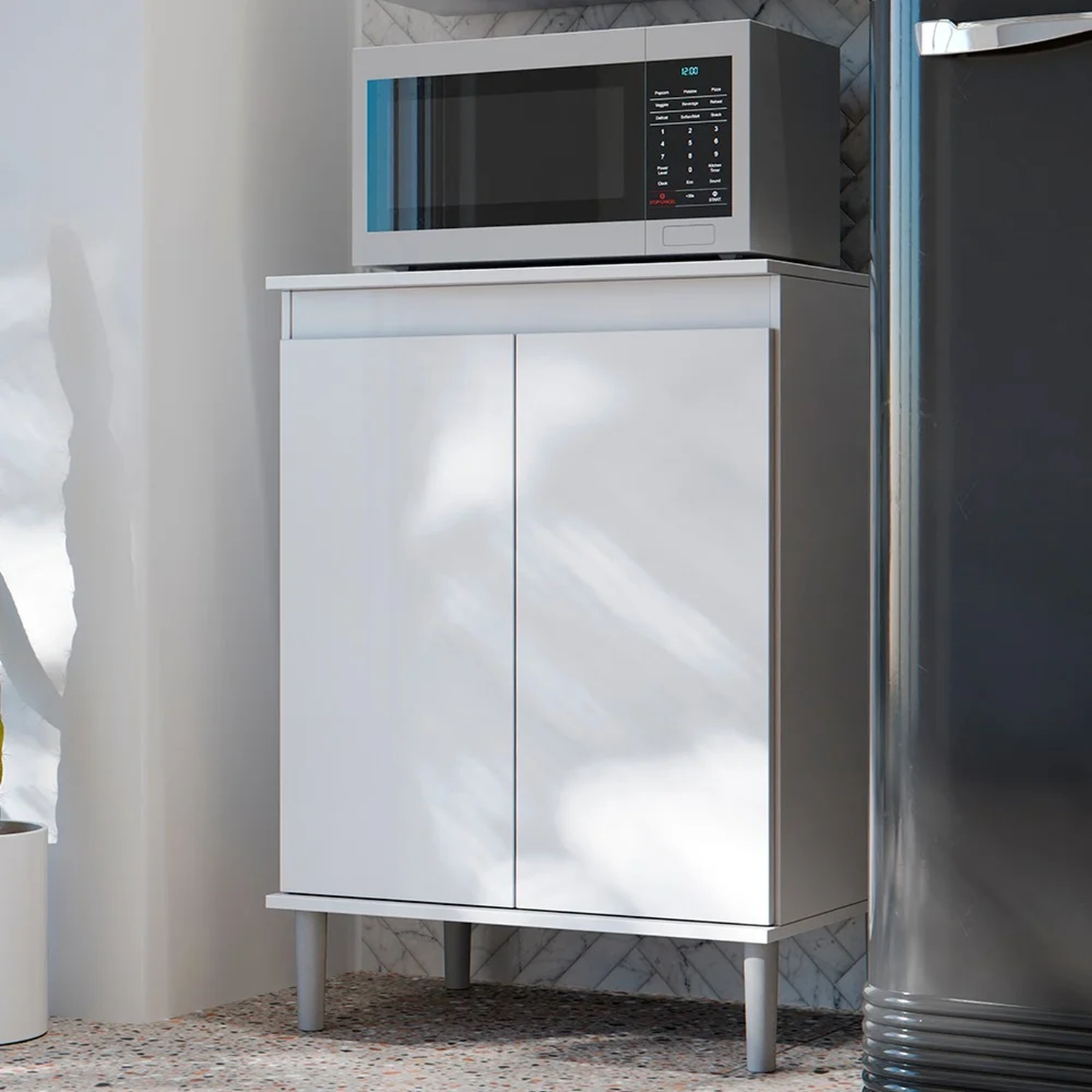 - Balcão multifuncional, serve de apoio para micro-ondas, forno ou objetos decorativos.