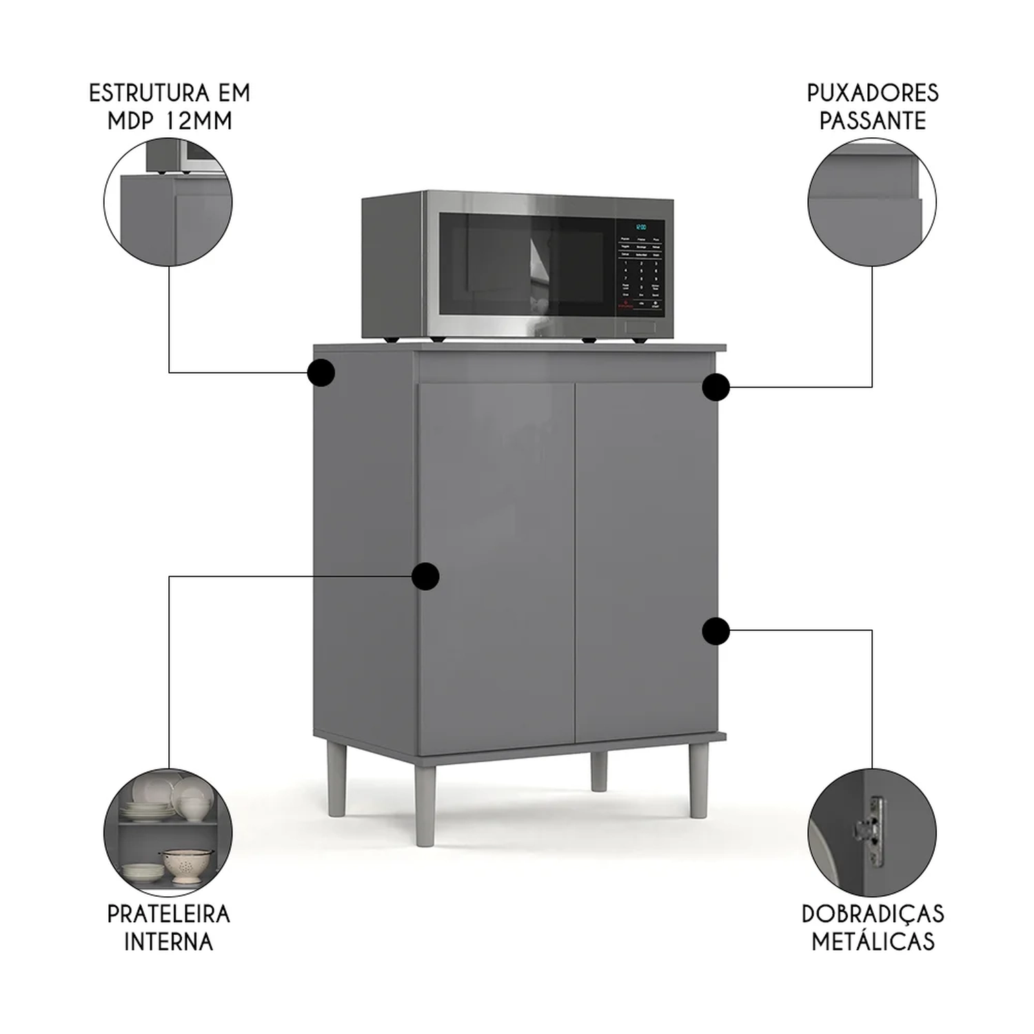 Deixe a sua cozinha ainda mais funcional e elegante com o Balcão de Cozinha com Tampo 2 Portas 61cm Italy Cinza - EJ Móveis, perfeito para completar a decoração e organização do seu espaço.
