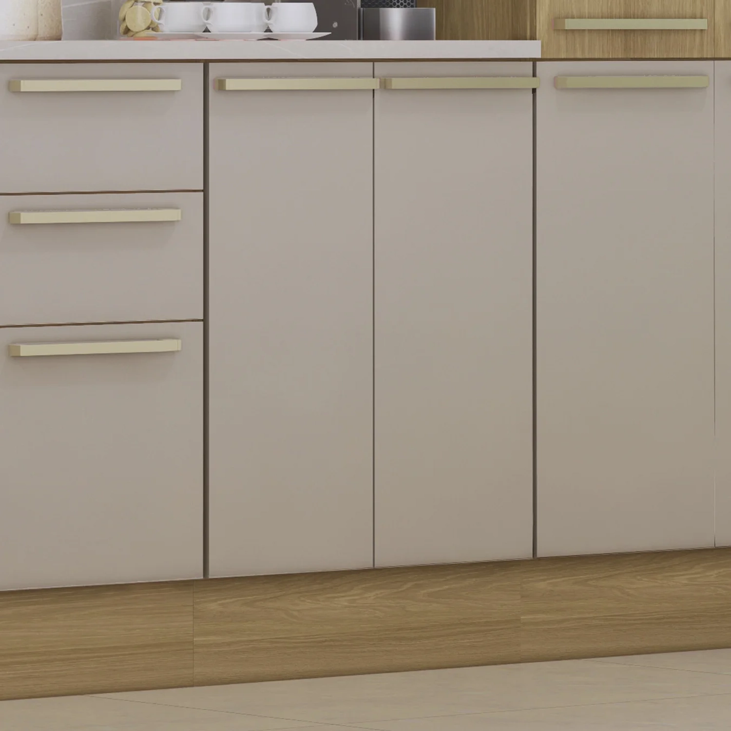 O Balcão Com Tampo de 25mm, perfeito para organizar utensílios e facilitar o preparo de alimentos. As portas, com dobradiças metálicas e amortecimento, garantem um fechamento suave e silencioso, enquanto os puxadores em alumínio adicionam um toque de sofisticação ao ambiente.