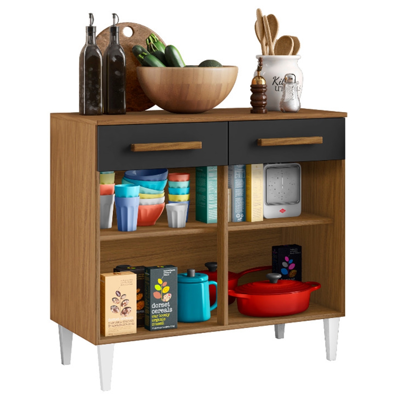 Compacto, funcional e versátil, este modelo é perfeito para otimizar o espaço, mantendo tudo organizado e complementando a decoração de forma harmônica em sua Cozinha Moderna.
