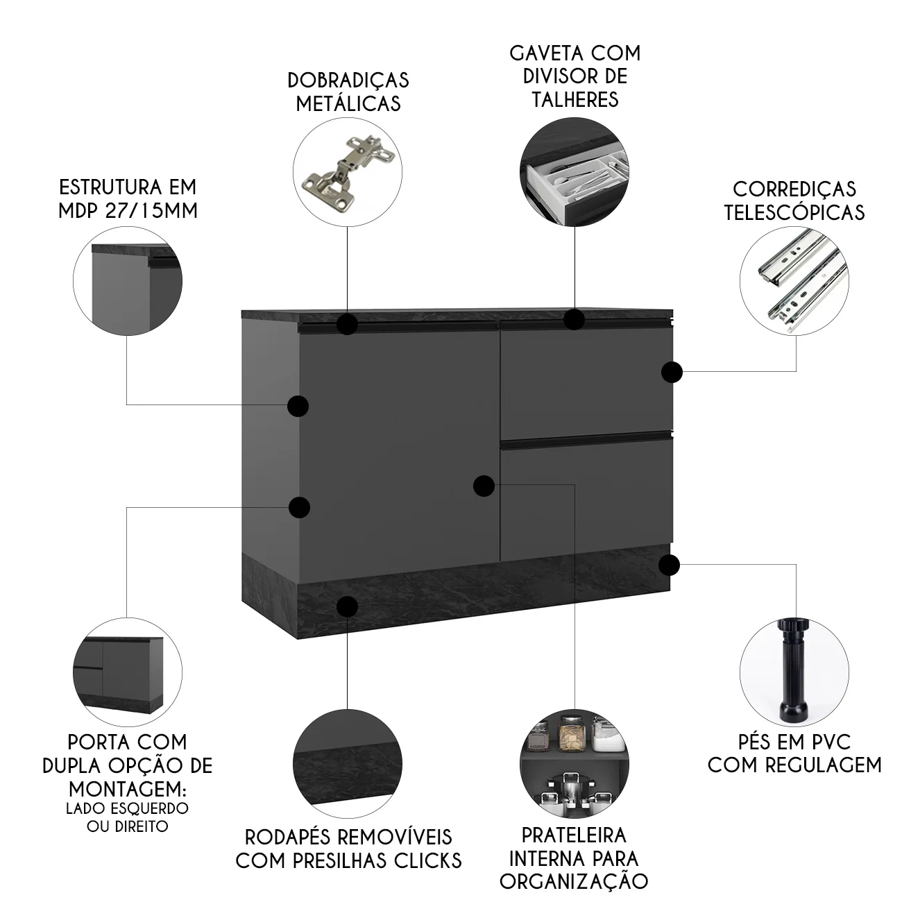 Balcão de Cozinha e Tampo 120cm Grace Grafite Z44 - Mpozenato