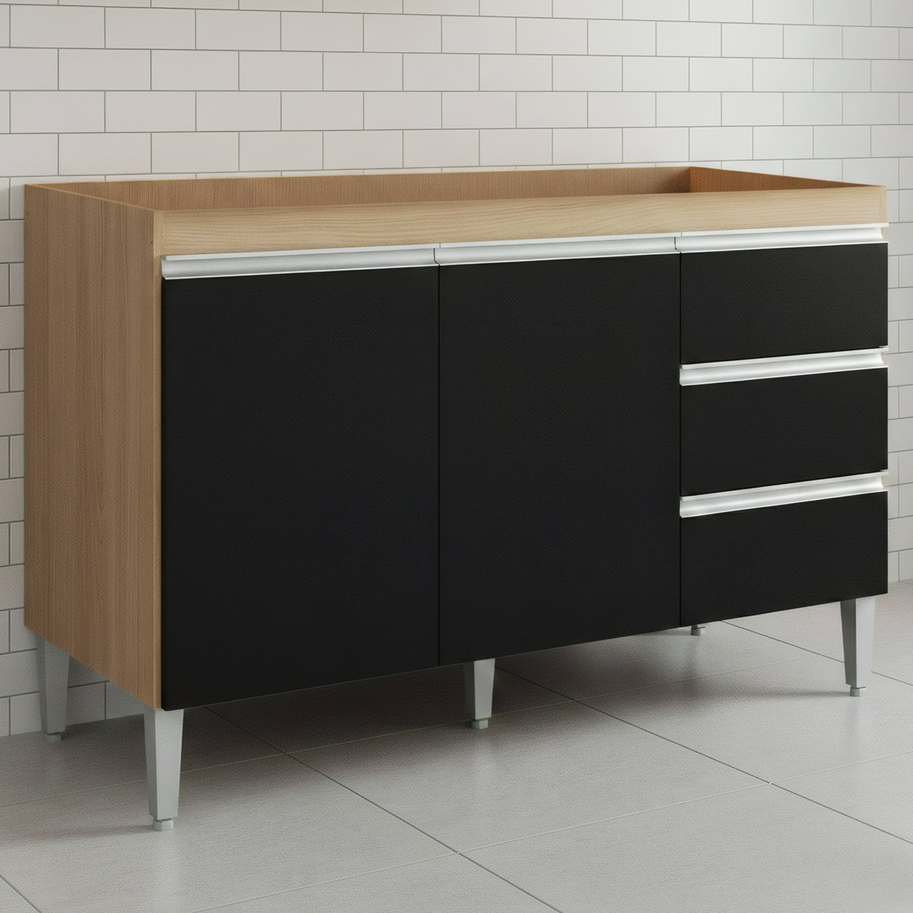 A Cozinha é um cômodo onde precisamos de toda a eficiência possível, não é? Para isso, apresentamos o Balcão de Cozinha Para Pia 100cm 3 Gavetas Andréia Amêndoa/Preto, da AJL Móveis confira!