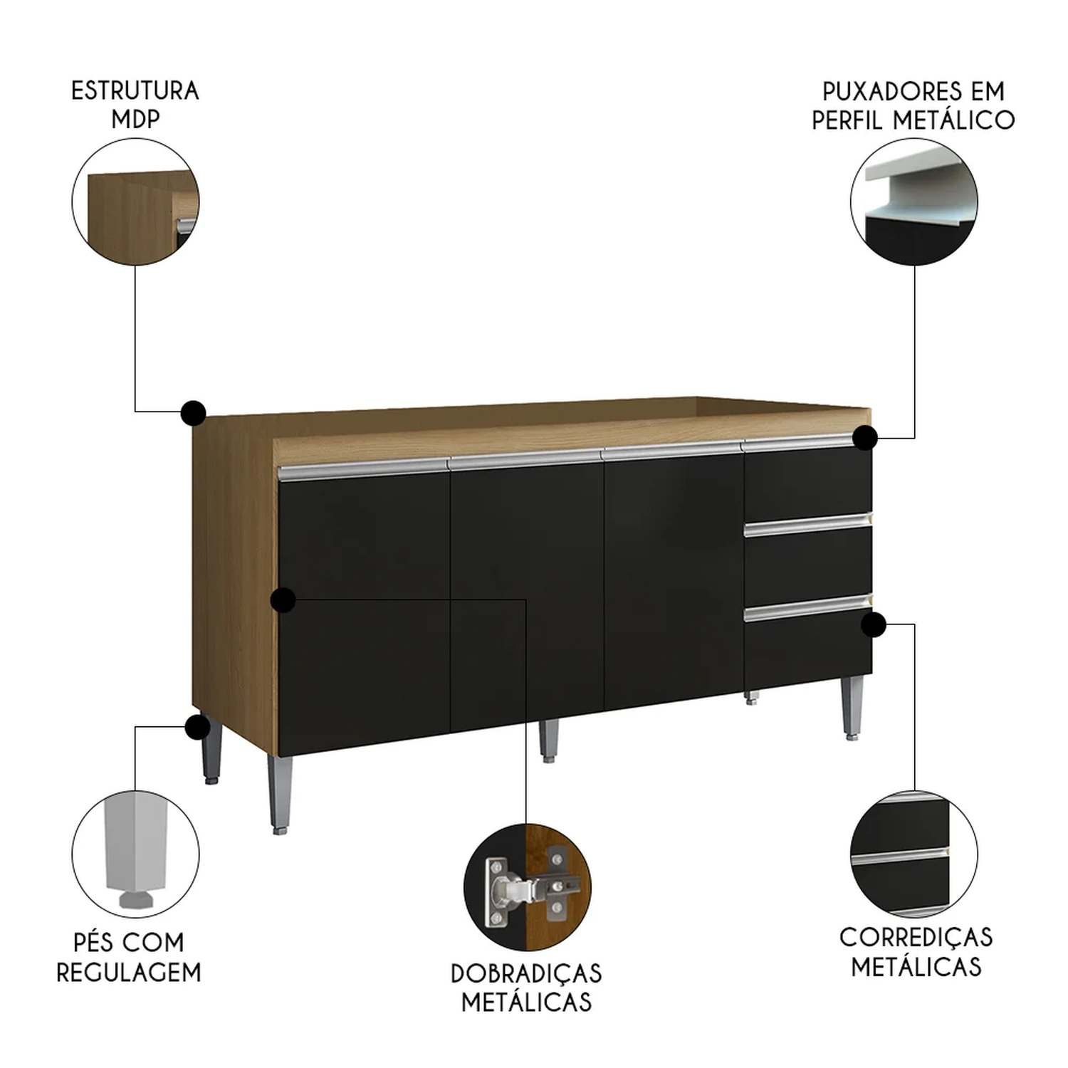 A Cozinha é um cômodo onde precisamos de toda a eficiência possível, não é? Para isso, apresentamos o Balcão de Cozinha Para Pia 160cm 3 Gavetas Andréia Amêndoa/Preto, da AJL Móveis confira!