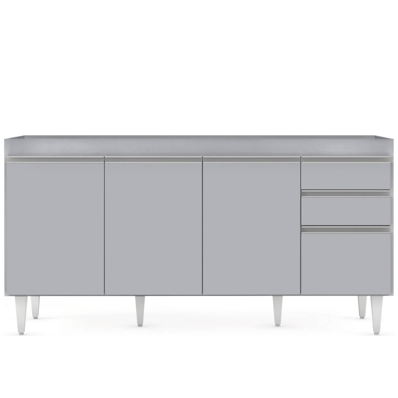Composto por quatro portas com puxadores em perfil metálico e duas gavetas, oferece excelente espaço interno para guardar utensílios, panelas e talheres, mantendo tudo sempre acessível.