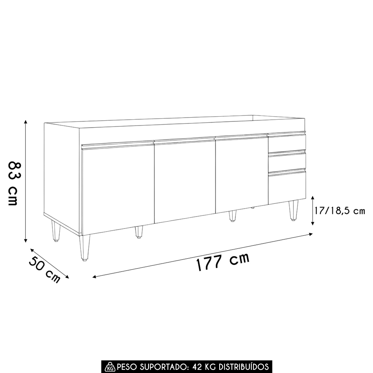 Peso Suportado: 42 Kg distribuídos.