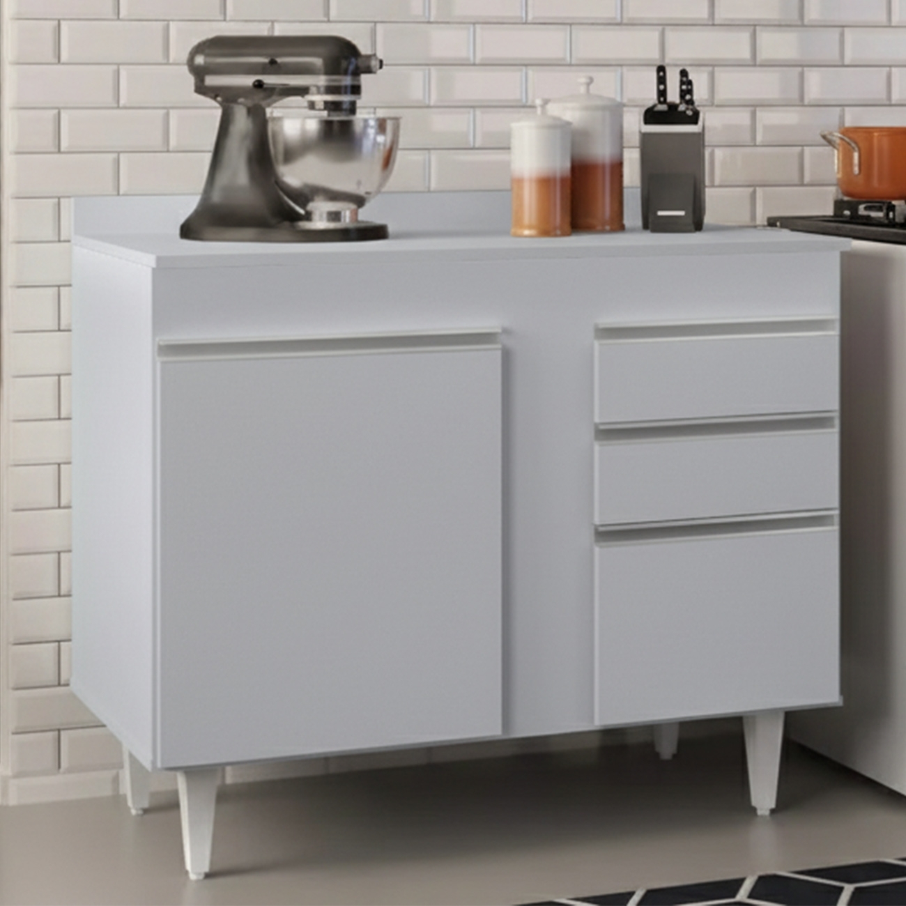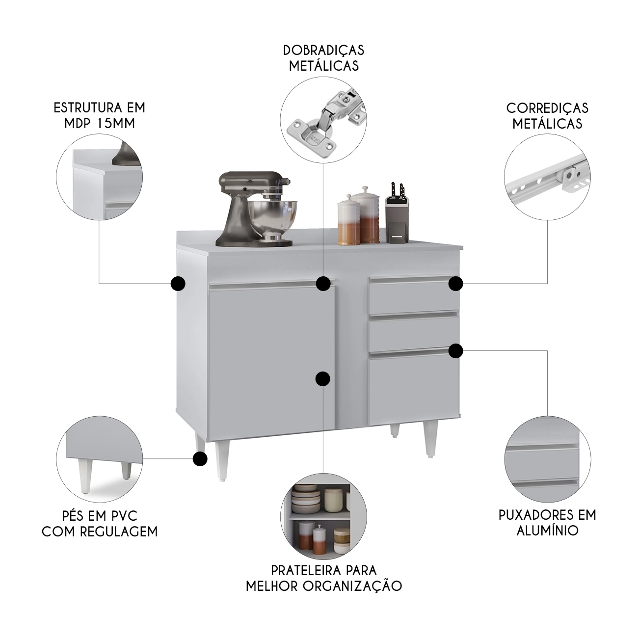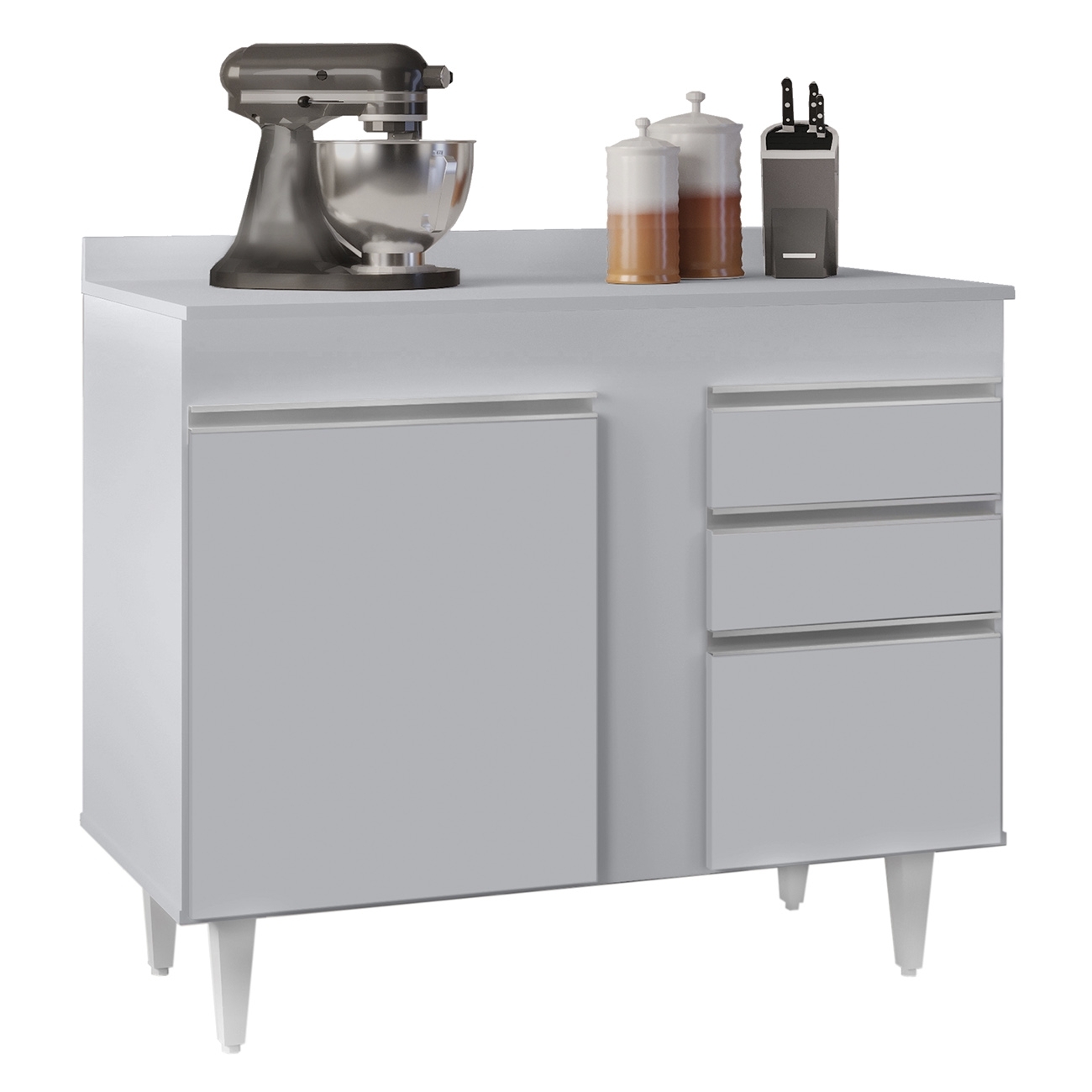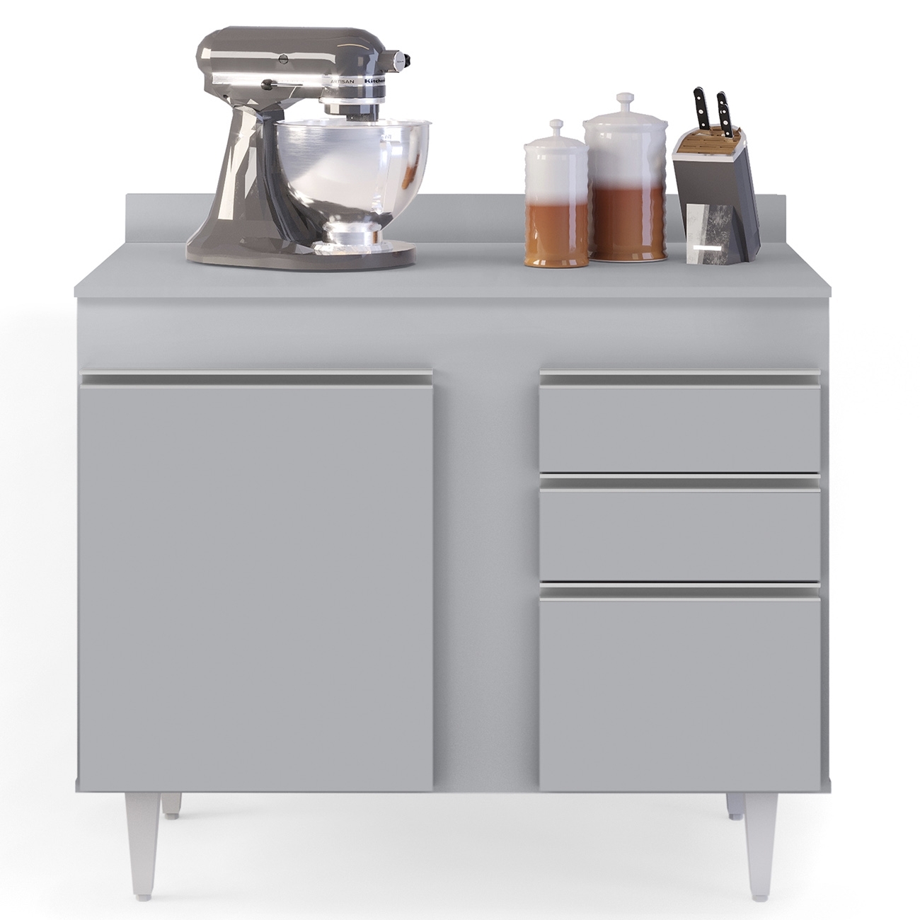 Balcão de Cozinha Para Pia Com Tampo 100cm Luziania Cinza Claro - Lumil