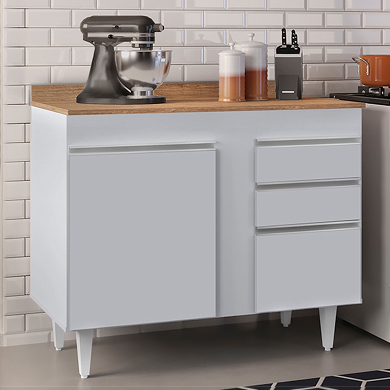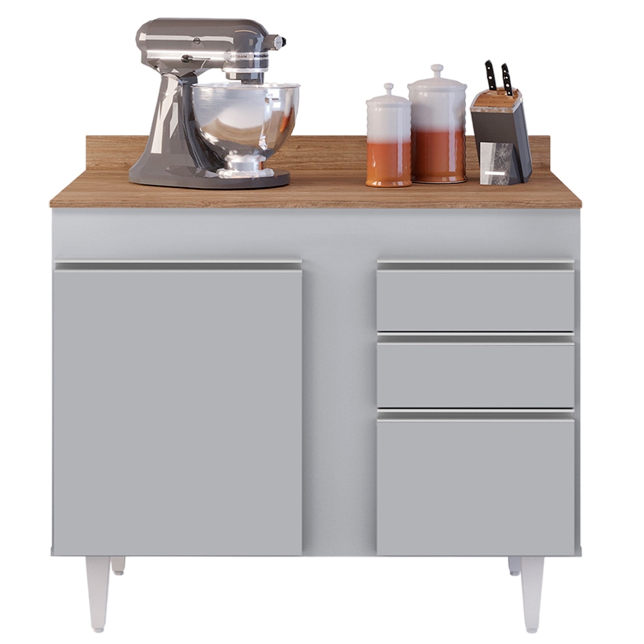 Balcão de Cozinha Para Pia Com Tampo 100cm Luziania Cinza Claro/Castanho - Lumil