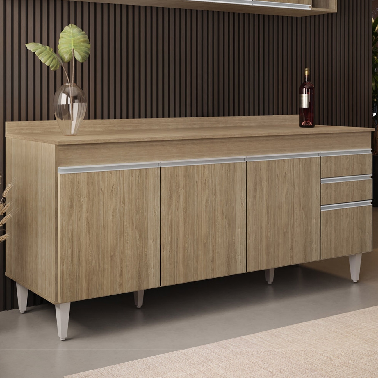 Ideal para organizar com estilo, este Balcão com Tampo oferece praticidade e versatilidade em qualquer Cozinha ou espaço gourmet, valorizando o Ambiente Moderno