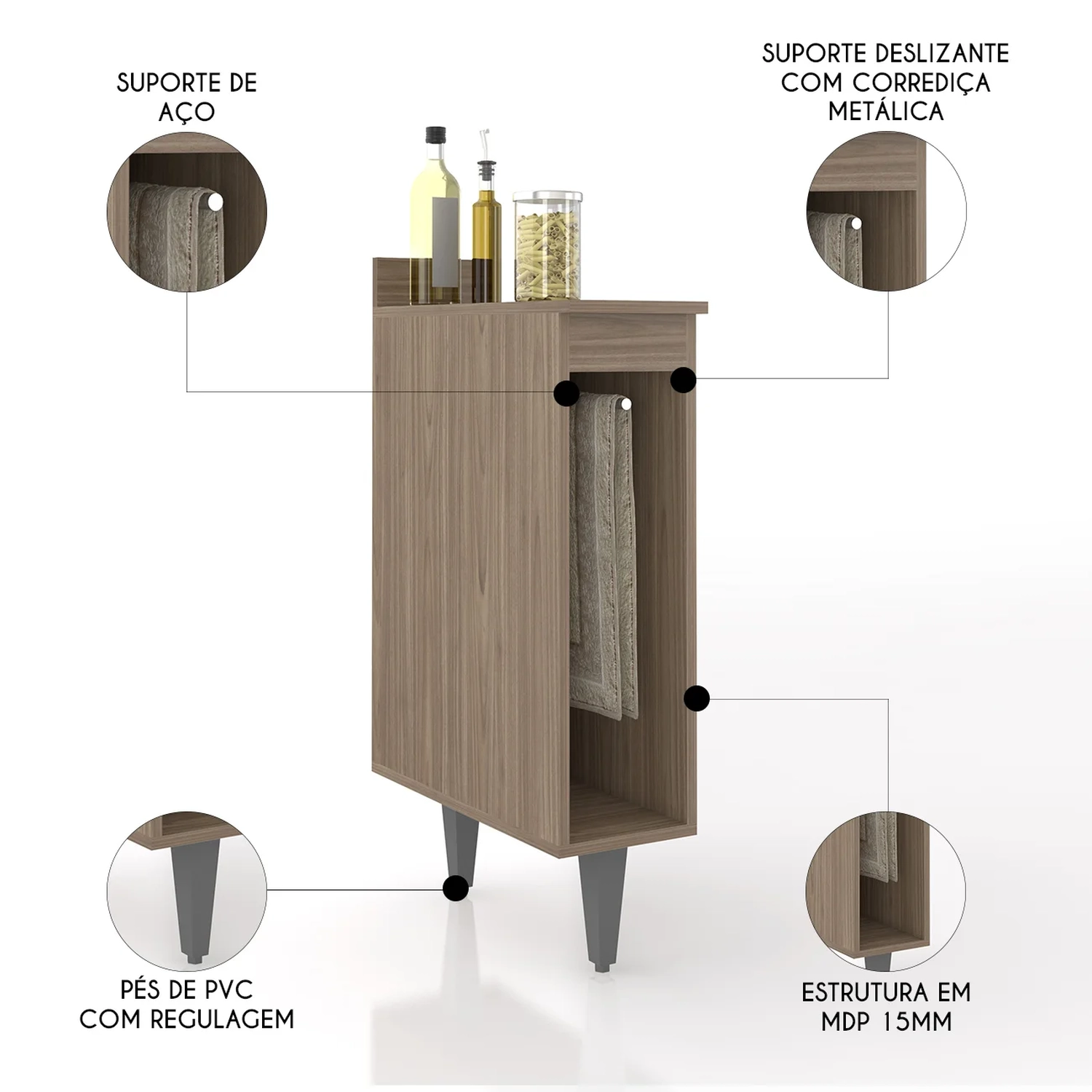 Uma Cozinha bonita e funcional facilita na rotina e no preparo das refeições, tornando o dia a dia mais agradável. O Balcão de Cozinha Porta Pano 20cm Pérola Z34 Freijó, da Mpozenato, é um complemento versátil e compacto, perfeito para sua casa.