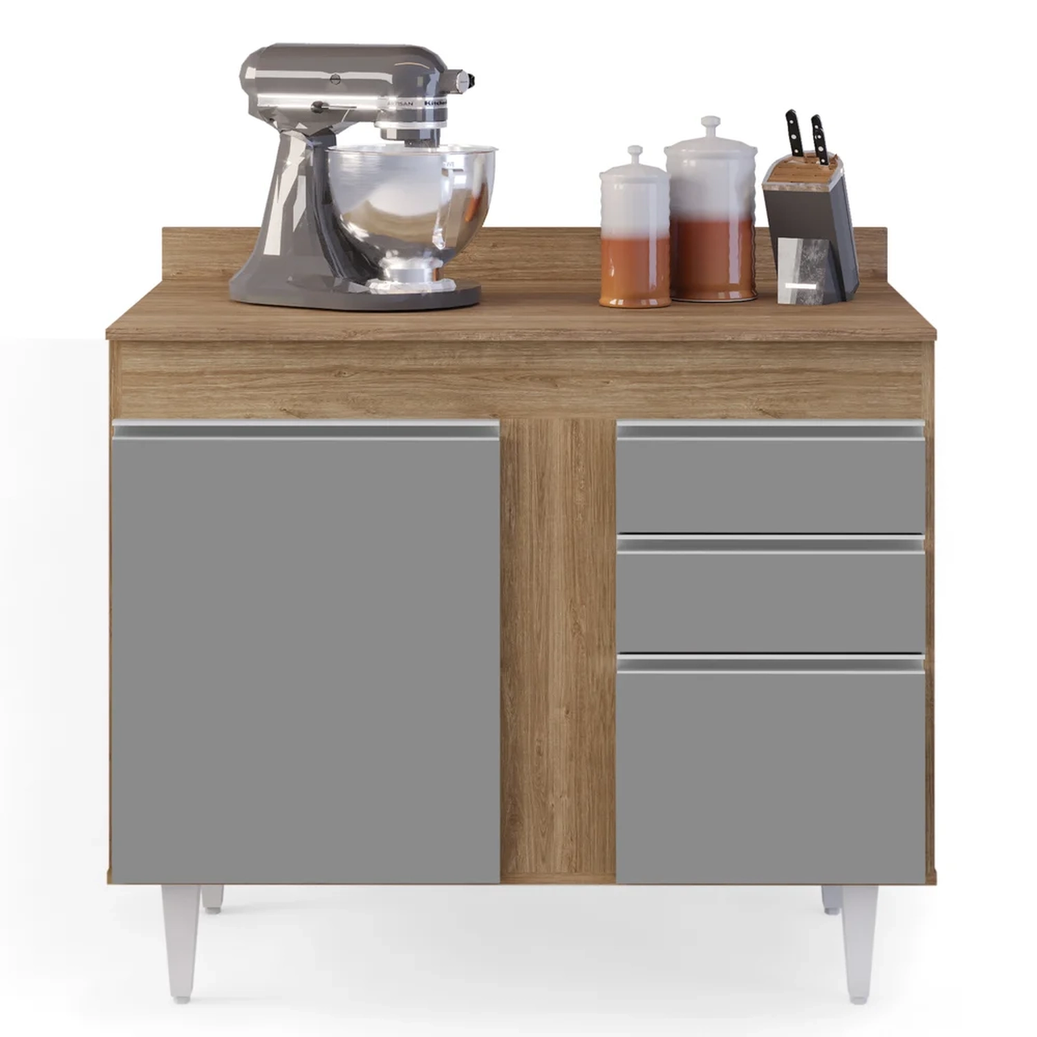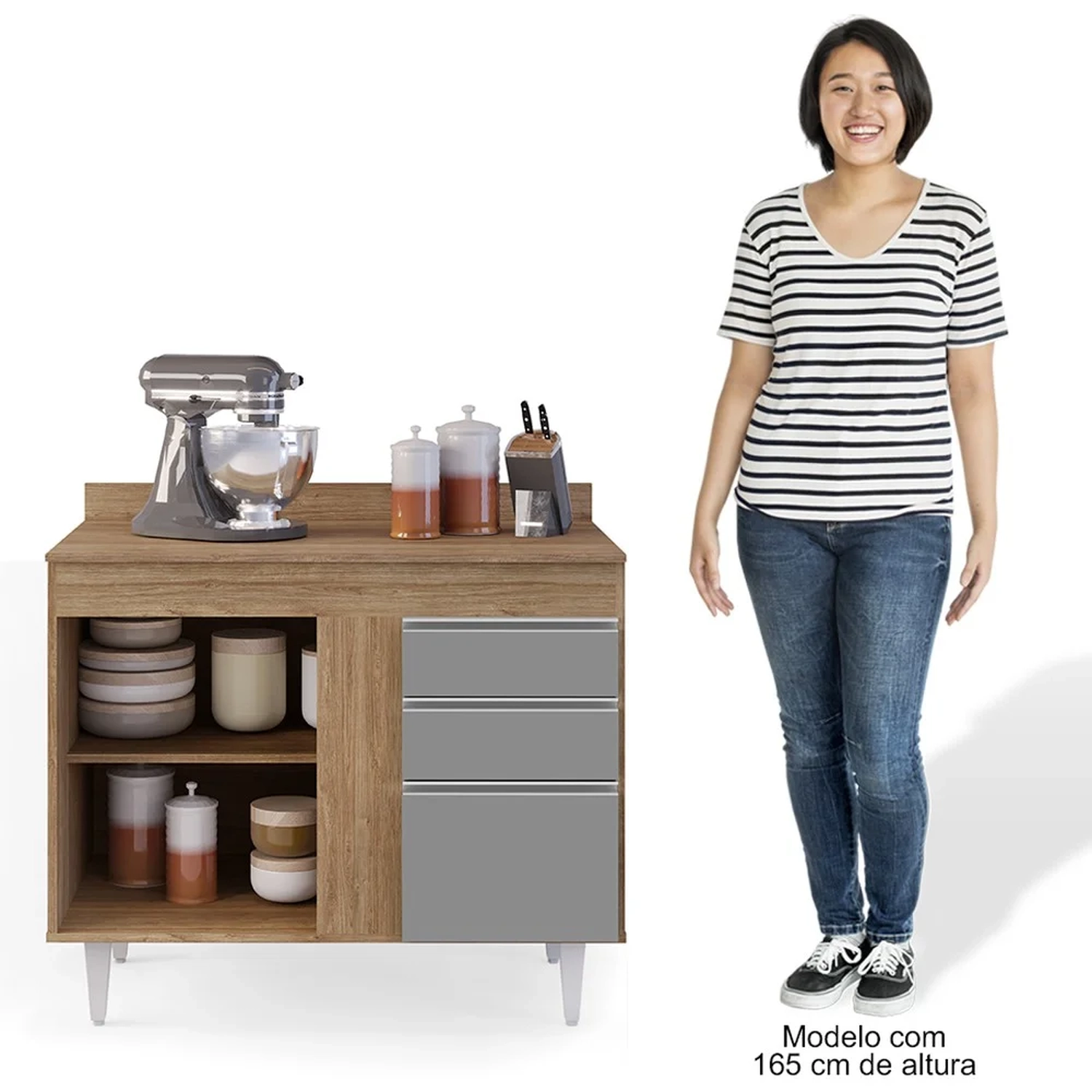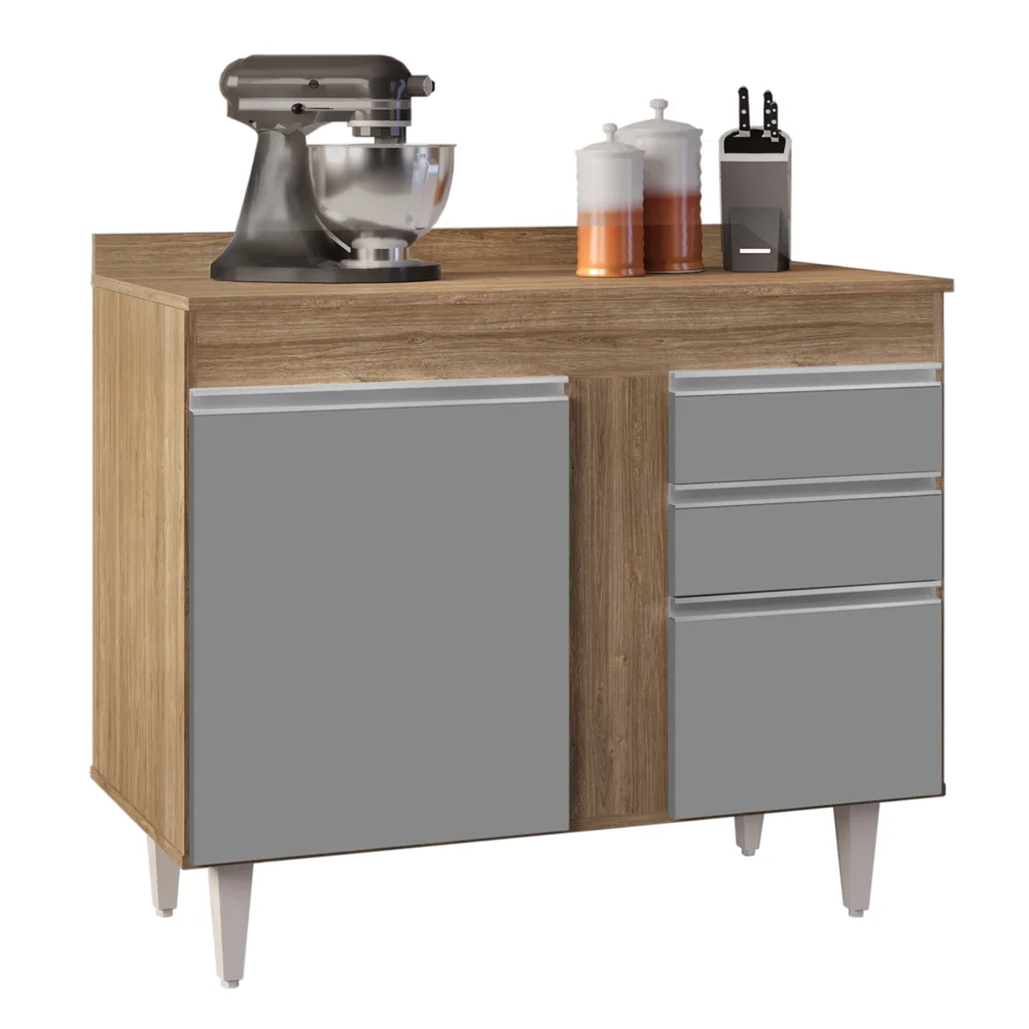 Pensamos em cada detalhe na hora de compor a nossa cozinha e sempre precisamos de um espaço a mais para a organização dos utensílios, pensando nisso o Balcão Gabinete com Tampo 2 Portas Luziania Castanho/Cinza da Lumil vem para compor a sua cozinha facilitando assim na hora de cozinhar!