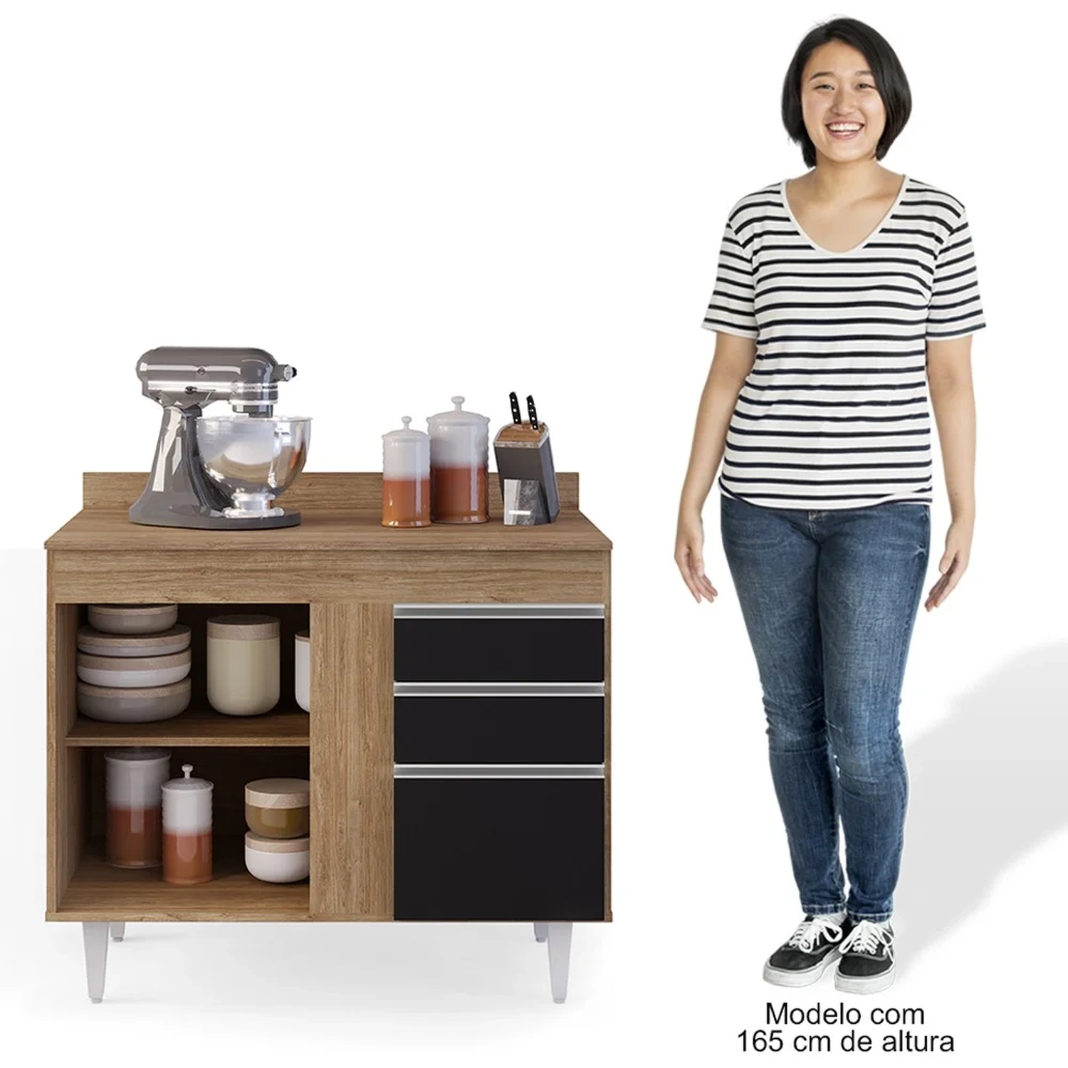 Pensamos em cada detalhe na hora de compor a nossa cozinha e sempre precisamos de um espaço a mais para a organização dos utensílios, pensando nisso o Balcão Gabinete com Tampo 2 Portas Luziania Castanho/Preto da Lumil vem para compor a sua cozinha facilitando assim na hora de cozinhar!