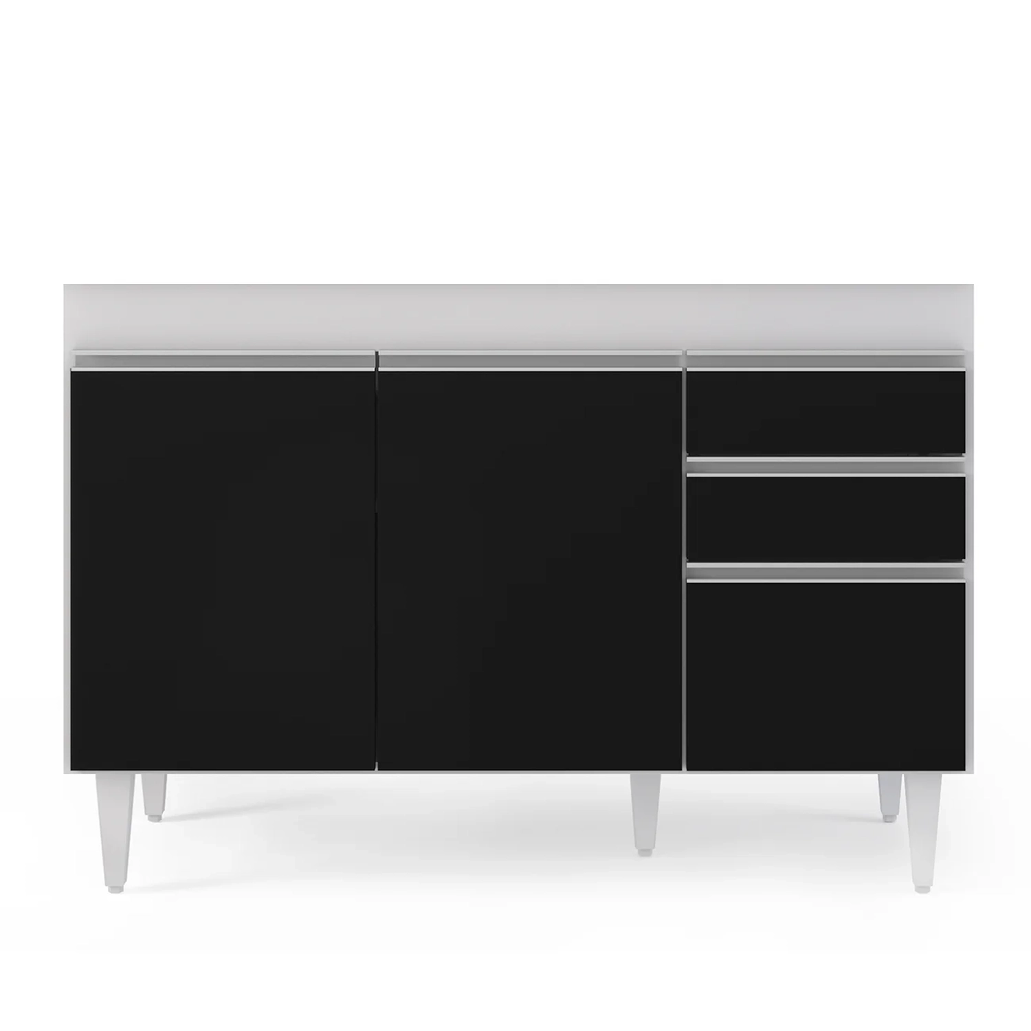 Por ser um cômodo onde praticidade e funcionalidade são conceitos que devem andar juntos, a cozinha muitas vezes é onde mais ficamos em dúvida sobre os complementos, não é? Mas que tal começar pelos itens essenciais como o balcão para pia? Sim, o modelo Michigan Branco/Preto é uma ótima alternativa por conter elementos indispensáveis nessa hora, que são as 3 portas com puxador em perfil metálico contendo amplo espaço interno e 2 gavetas para seus talheres! Tudo em MDP com acabamento em pintura BP e pés em PVC para sustentação do móvel!!
