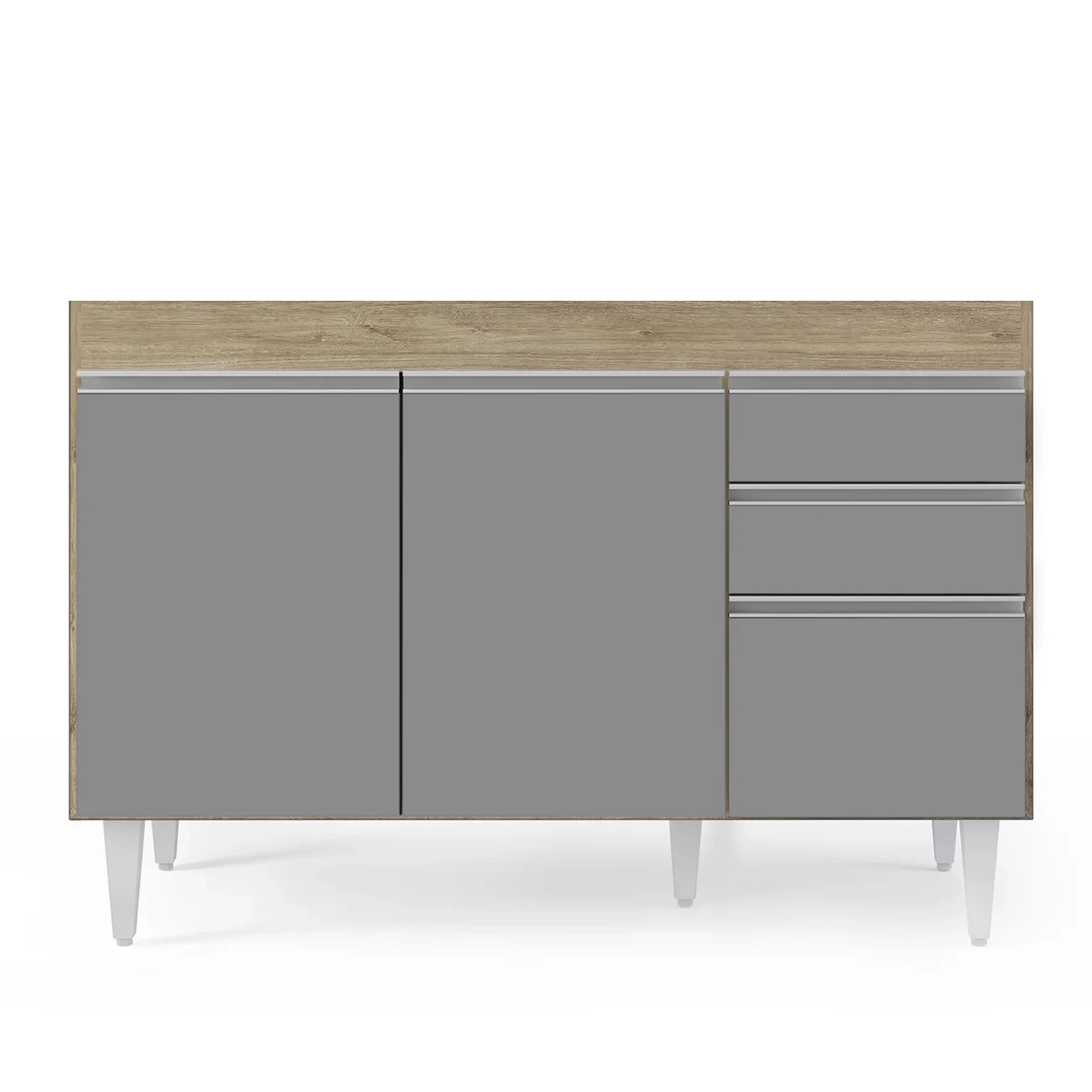 Por ser um cômodo onde praticidade e funcionalidade são conceitos que devem andar juntos, a cozinha muitas vezes é onde mais ficamos em dúvida sobre os complementos, não é? Mas que tal começar pelos itens essenciais como o balcão para pia? Sim, o modelo Michigan Castanho/Cinza é uma ótima alternativa por conter elementos indispensáveis nessa hora, que são as 3 portas com puxador em perfil metálico contendo amplo espaço interno e 2 gavetas para seus talheres! Tudo em MDP com acabamento em pintura BP e pés em PVC para sustentação do móvel!!