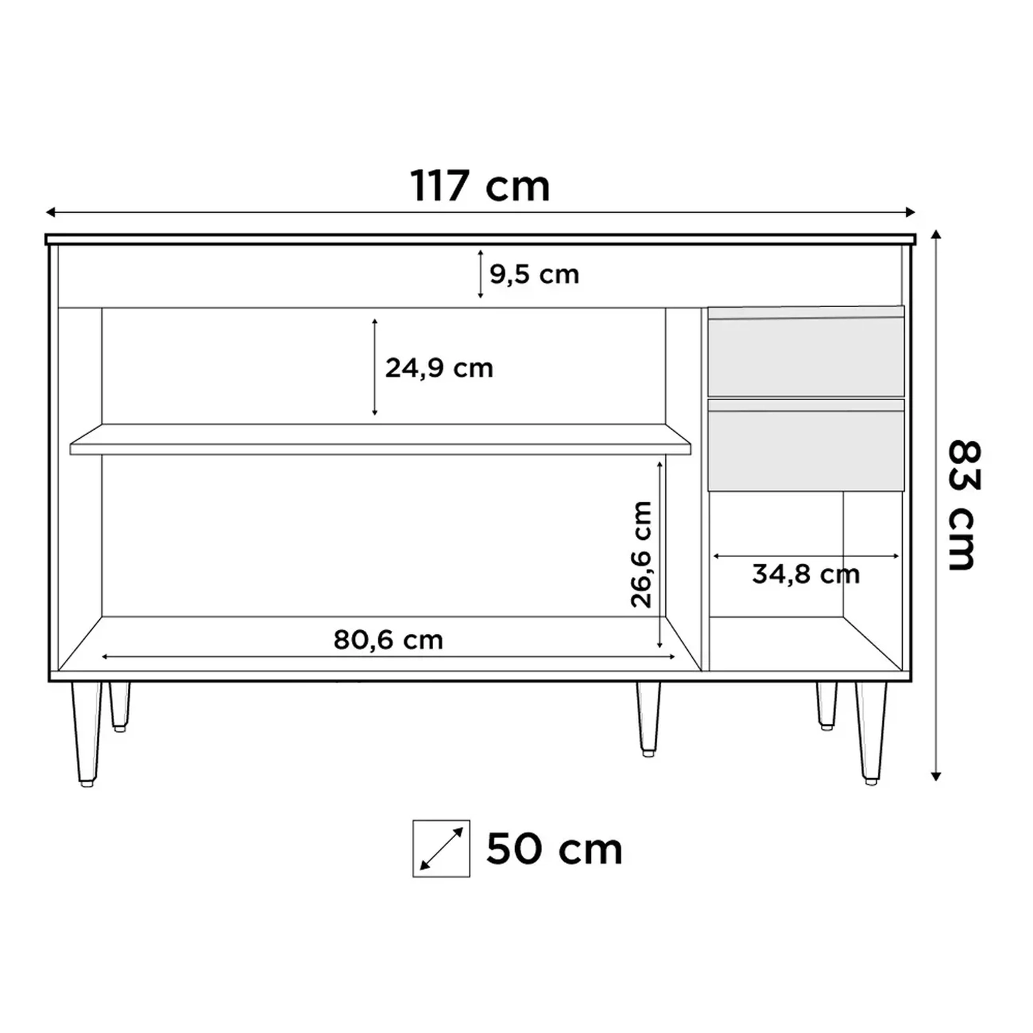 Profundidade: 50 cm.