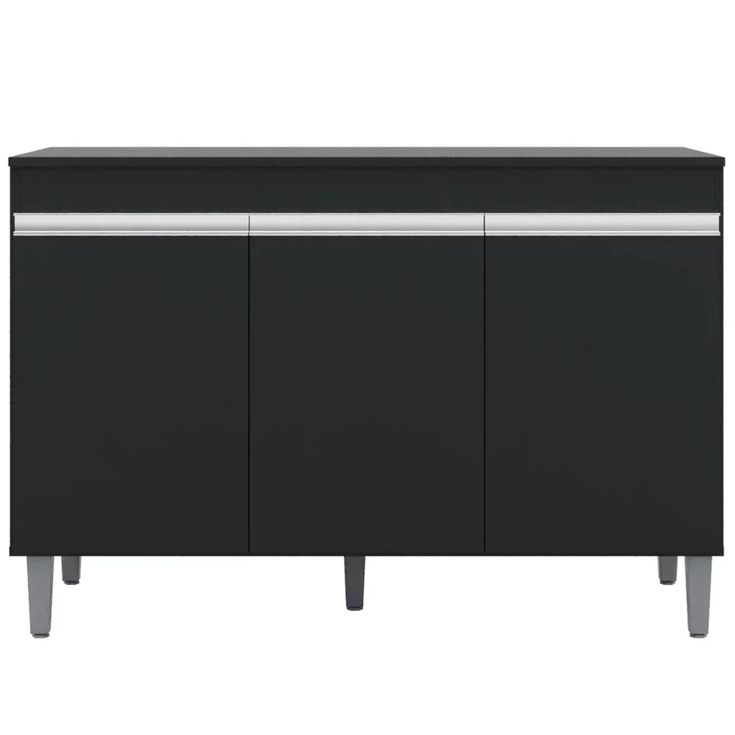 O Balcão Gabinete de Pia com Tampo 120cm 3 Portas Manu Preto - AJL Móveis integra-se com os demais móveis para criar um ambiente perfeito. Este Balcão com Tampo pode armazenar desde ingredientes, potes, acessórios e o que sua necessidade precisar. Tudo isso com estilo e praticidade.